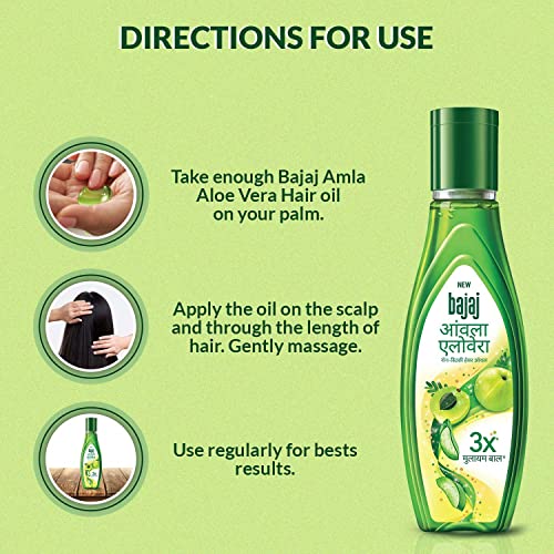 Bajaj Amla Aloe Vera Hair Oil makes hair 3X more soft & silky. It has Aloe Vera which conditions & softens hair & Amla nourishes the hair maintains natural color & promotes hair growth. It is light & non-sticky.