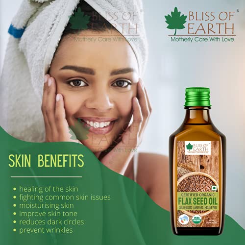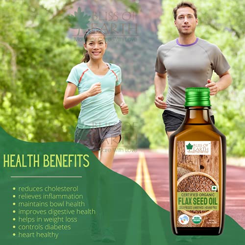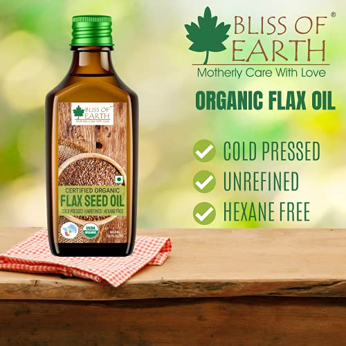Bliss of Earth 500ML Certified Organic Flaxseed Oil for Eating & Hair Cold Pressed & Hexane Free