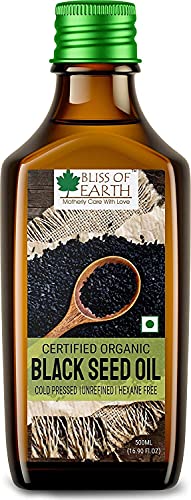 Bliss of Earthorganic Kalonji Oil (Black Cumin Seed Oil) is a premium quality 100% pure 100% organic unrefined virgin & cold pressedoil. It is extracted from the seeds of organic black cumin. It is a rich source of essential fatty acids and also contains two very powerful compoundsNigellone an anti-histamineandThymoquinone an anti-inflammatoryalong with other nutrients that work synergistically to support the body's various functions. Suggested Use:For adults take 1-2 TSP daily with food or your favourite juice. If using for the first time start with o½ TSP and gradually increase over a few days. Regular Use of Black seed promotes: Healthy Inflammatory response. Skin & Hair Health Digestive & respiratory health Healthy blood cholesterol levels Healthy blood pressure levels Healthy blood sugar levels