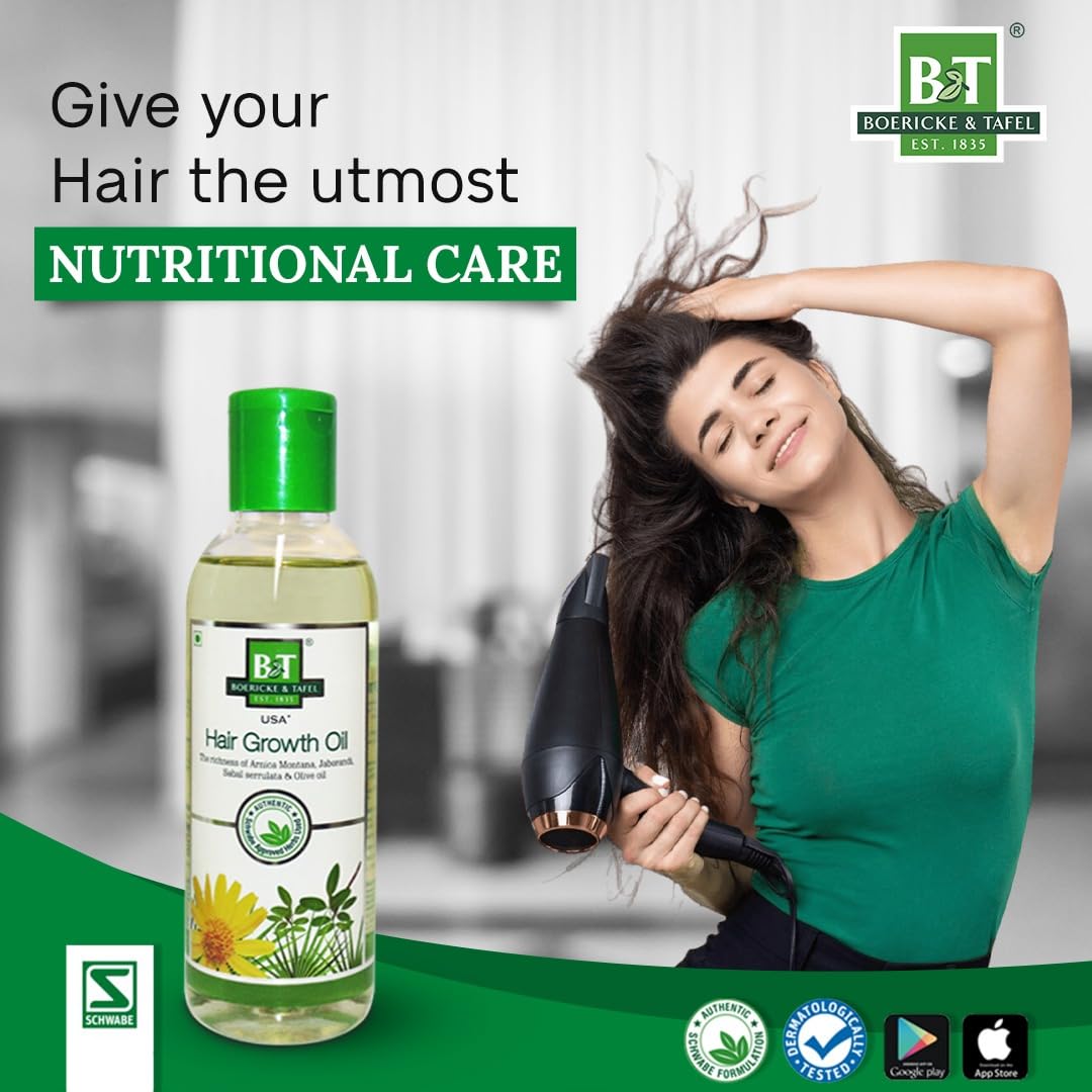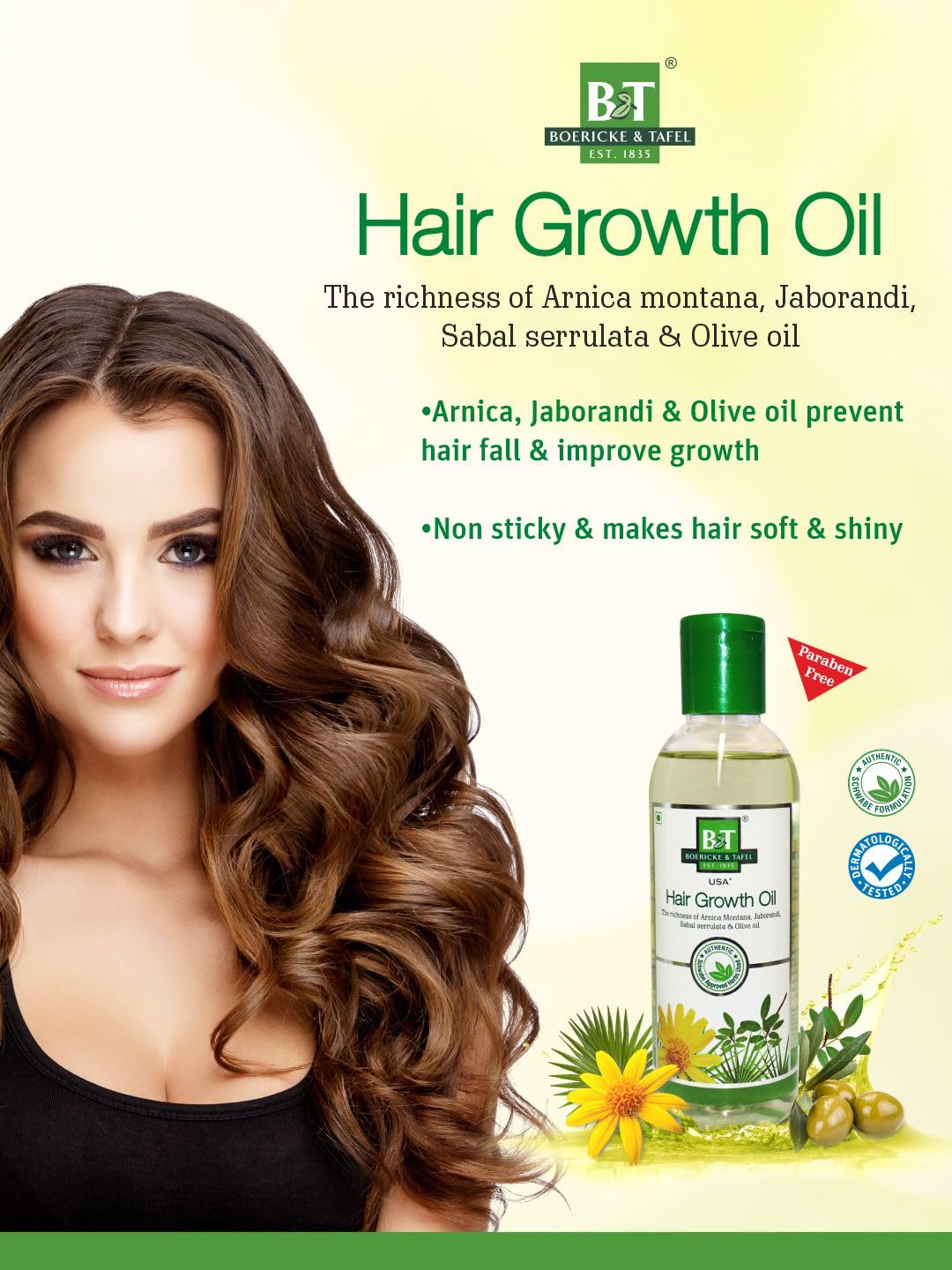 Boericke & Tafel B&T Hair Growth Oil - Promotes Hair Growth | Strengthens Hair Root & Helps Reduce Hair Fall | Helps Fight Dandruff with Olive Oil Arnica Montana Jaborandi - Pack of 2