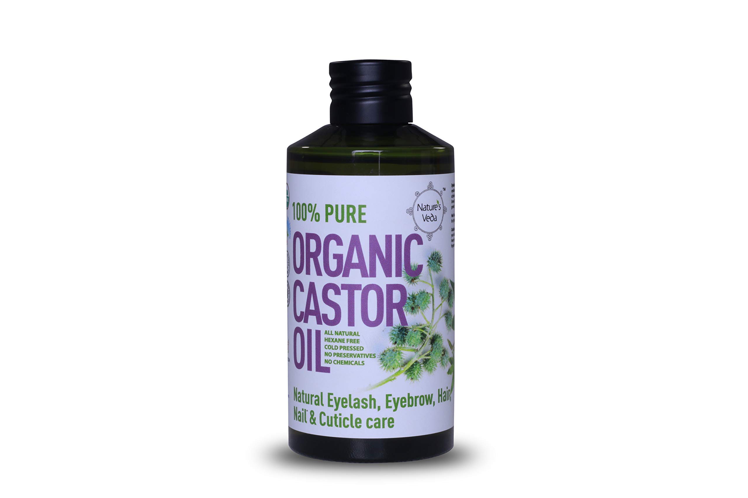 Nature's Veda Organic Castor Oil 200ml - 100% Pure & USDA & India Organic Certified Oil, Growth All Natural Eyelash and Eyebrow Care, Pure Castor Oil for eyelashes, Hair Nail & Cuticle Care Oil