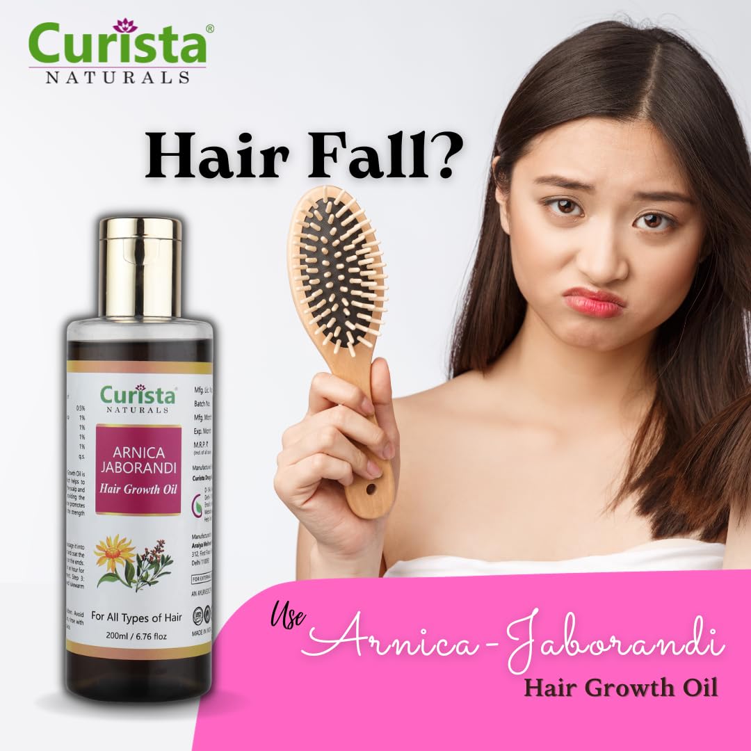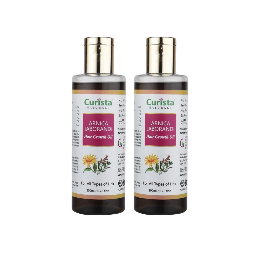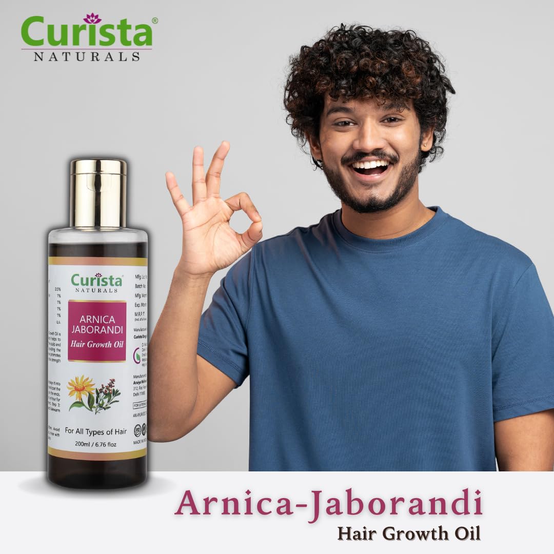 Curista Naturals Arnica-jaborandi hair growth oil is a natural and effective blend of herbs that increases blood circulation and stimulates hair follicles to promote healthy hair growth. This oil contains powerful ingredients such as arnica Montana Jaborandi Amla Bhringraj and Brahmi which are known for their hair-strengthening and growth-promoting properties. A meticulously crafted solution for those seeking lush vibrant locks. Specially formulated with a blend of natural ingredients our hair oil is designed to promote optimal hair health nourishing your scalp and stimulating robust growth. Massage a small amount of the oil into your scalp ensuring even distribution. Leave it on for at least an hour or for best results overnight. Wash and condition your hair as usual. For optimal results use regularly. Transform your hair care routine with our Hair Growth Oil and unlock the secret to healthier more beautiful hair. Embrace the confidence that comes with a head full of vibrant flourishing locks.