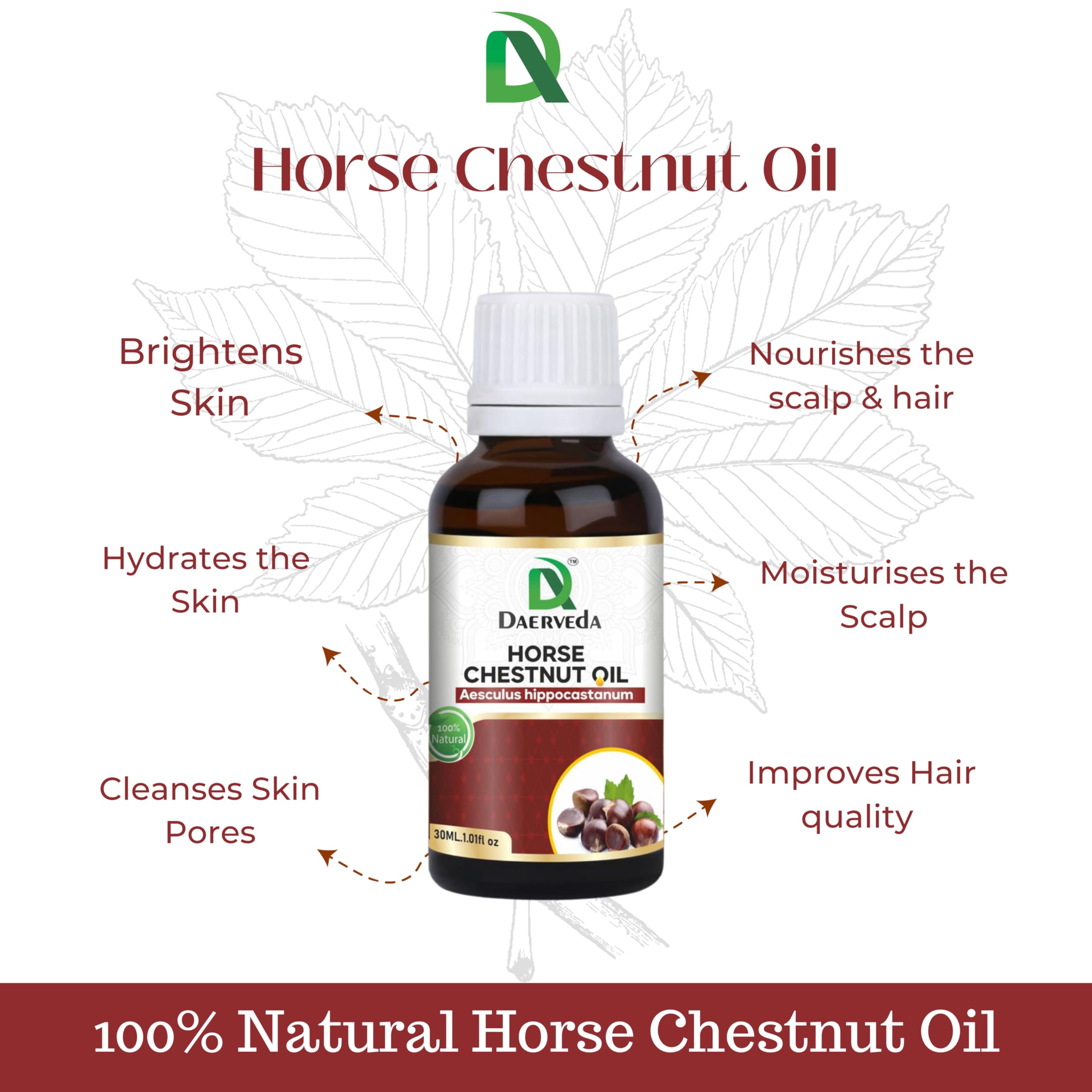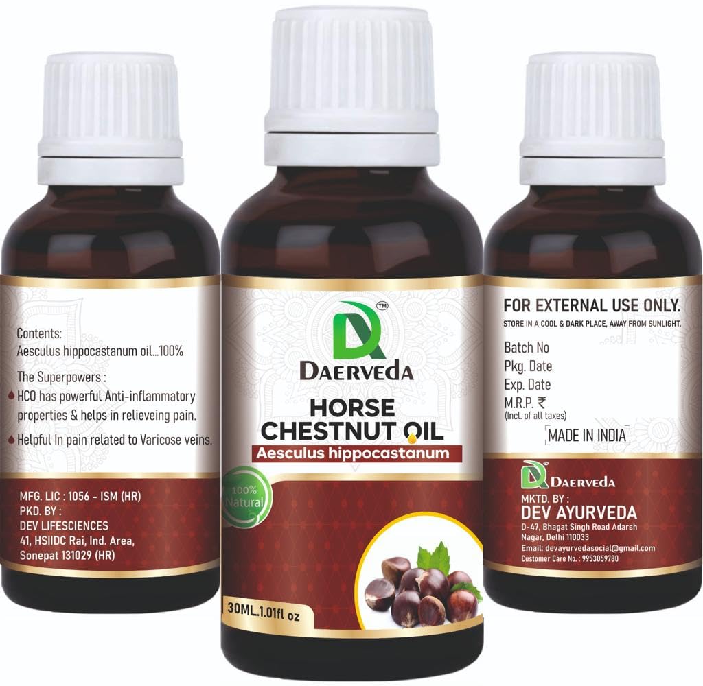 Dev Ayurveda Horse Chestnut Oil 30 Ml. (1.01 Fl. oz) 100% Pure & Natural For Skin Hair and Varicose Veins