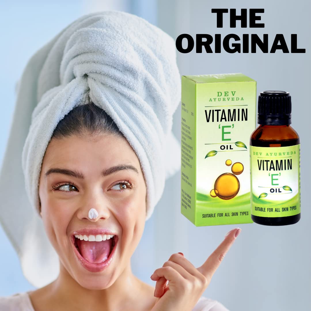 WHAT IS VITAMIN E OIL KNOWN FOR? -Vitamin E is best known for its antioxidant properties . Many companies add vitamin E to their beauty products. And for good reason! -Vitamin E has been used in dermatology since the 1950s to help protect the skin against aging inflammation and sun damage. The fat-soluble antioxidant is vital for maintaining healthy skin and Hair. - Vitamin E has been hailed as a cure-all to turn frizzy damaged unmanageable hair into shiny luscious locks worthy of a shampoo commercial â or a sun-soaked Instagram image. >WHAT CAN VITAMIN E DO FOR YOUR HAIR? -Prevent hair loss -Improve scalp circulation -Balance oil production -Add shine & Lustre -Support a healthy scalp >HOW TO USE VITAMIN E OIL FOR HAIR? -Dilute Dev Ayurveda Pure vitamin E oil in a carrier oil of your choice & apply on the scalp. -Vitamin E oil can be mixed with a shampoo or a conditioner . -Vitamin E oil can be added as one of the most potent ingredients in your Hair Mask. >WHAT CAN VITAMIN E DO FOR YOUR SKIN? - Vitamin E acts as a moisturizing agent for your dull skin. -Vitamin E also helps you fight acne. >HOW TO USE VITAMIN E OIL FOR SKIN? -Dev Ayurveda Pure Vitamin E Oil can be mixed with any body/face oil . -Vitamin E Oil can be mixed with any body lotion or face cream .