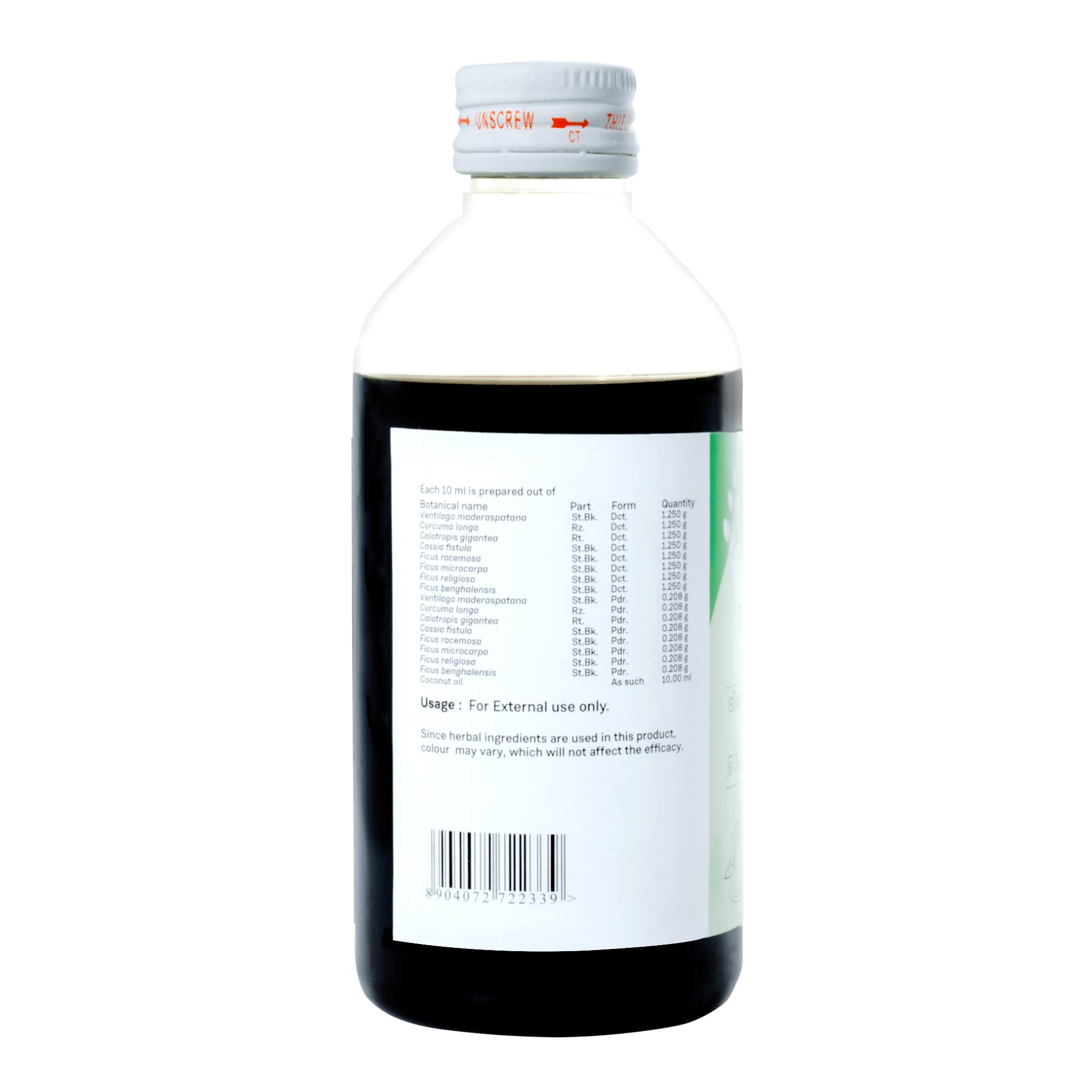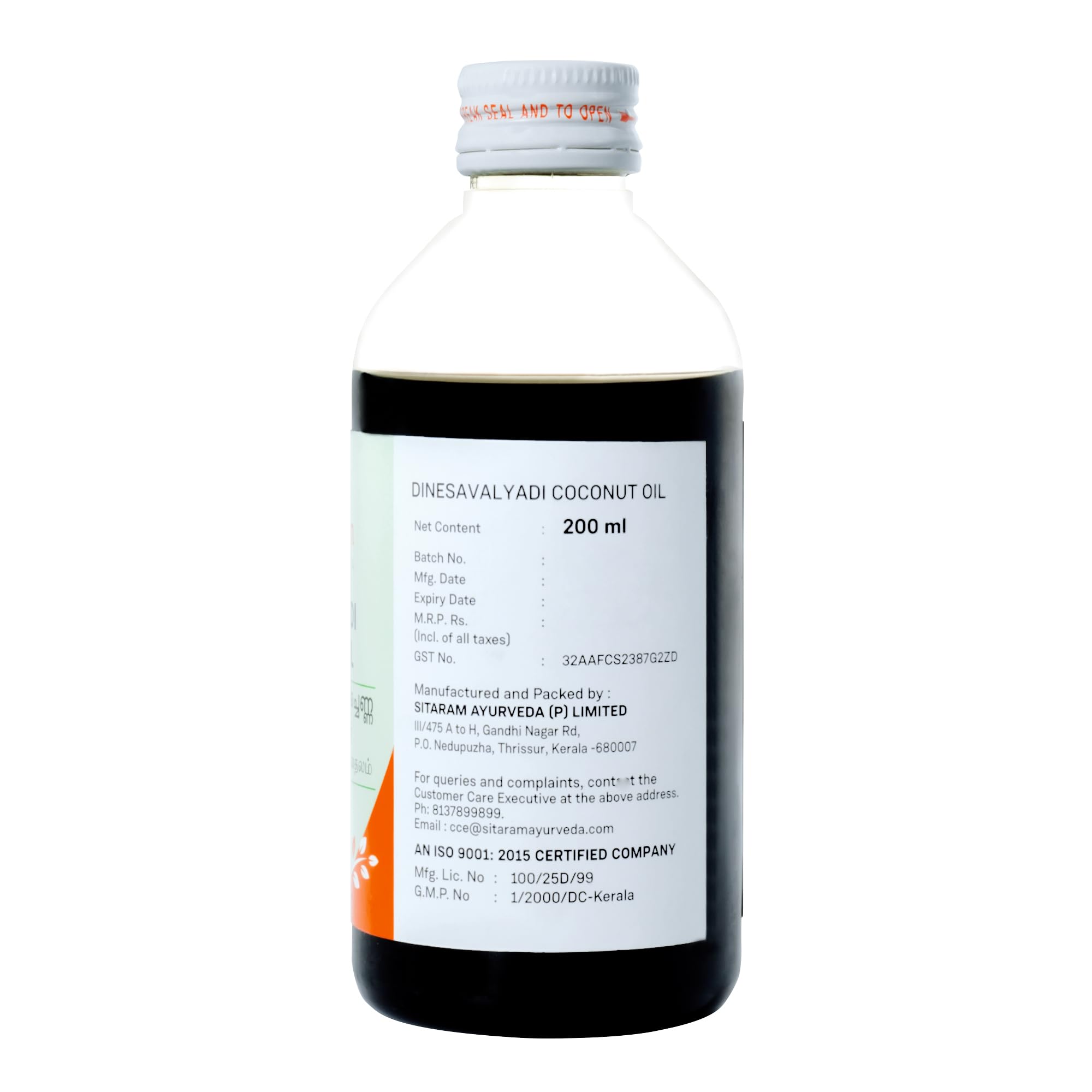 Alleviates skin problems:- Dinesavalyadi Kera Thailam possesses a unique 'Visha-hara property. It eases chronic skin sensitivity painful and itchy rashes and peeling of the skin due to various circumstances.
