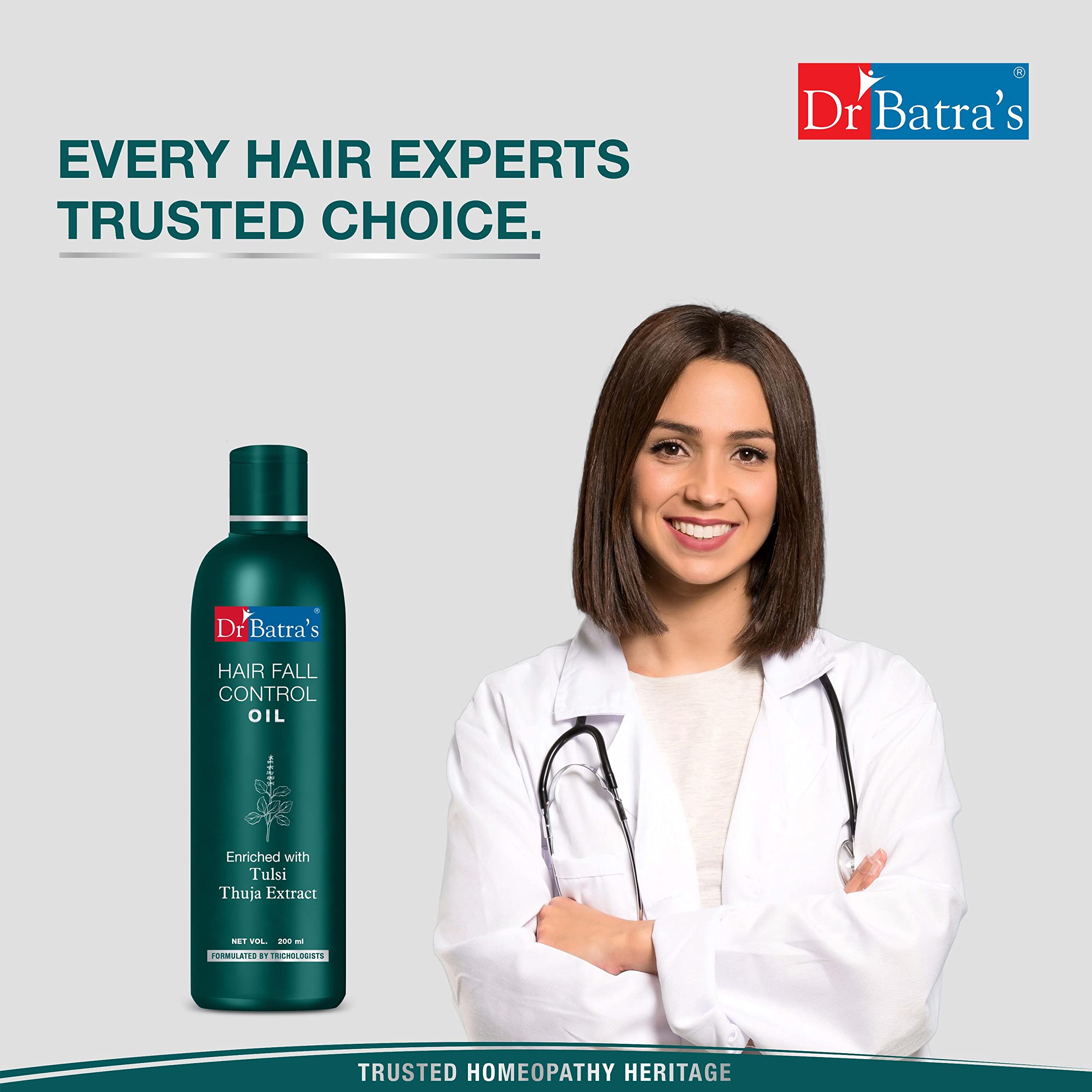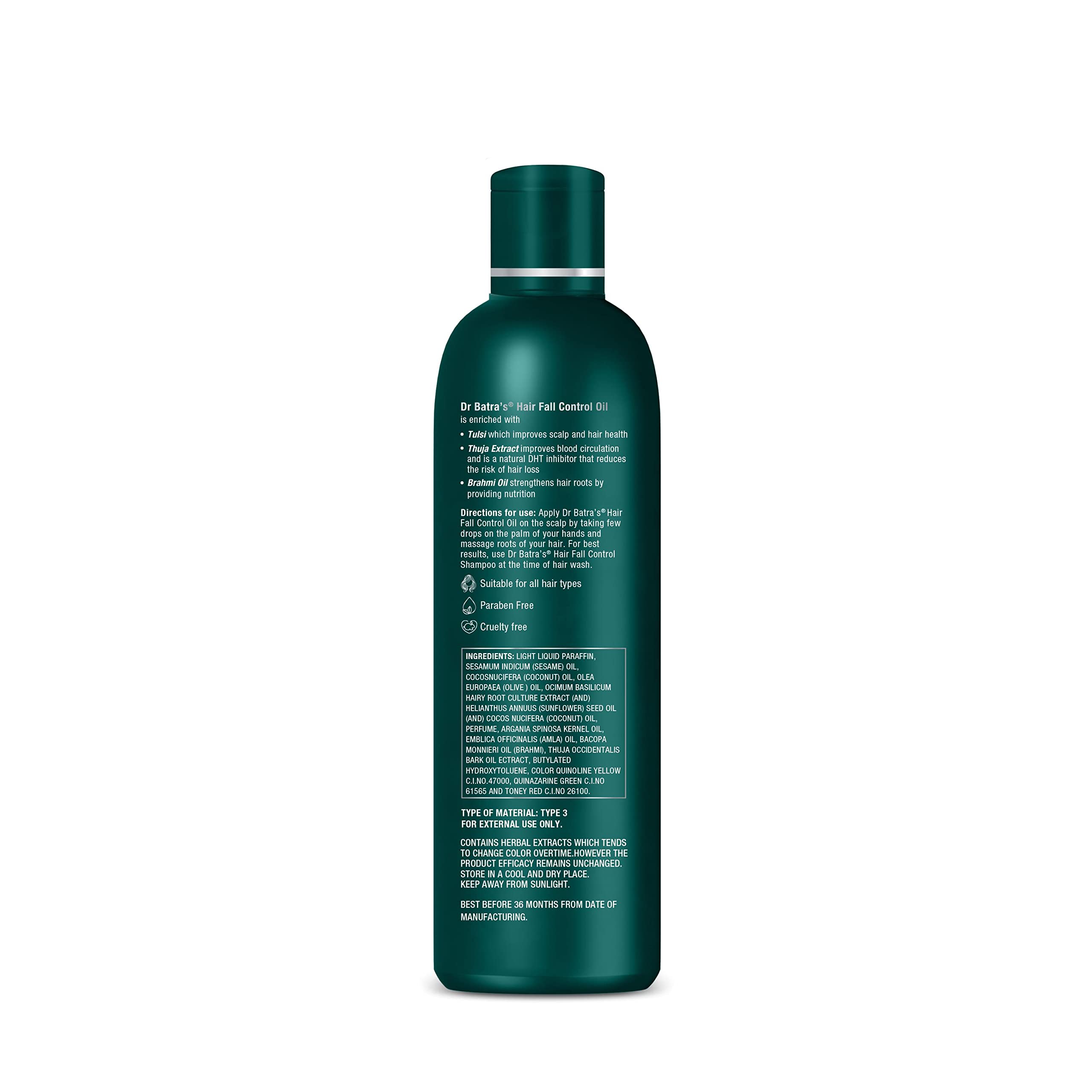 Dr Batra's Hair Fall Control Oil is a specially formulated non-sticky hair oil with natrual ingredients like Thuja Brahmi and Tulsi extracts to control hair fall. Thuja occidentalis (white cedar) helps to inhibit DHT thus reducing the of hair . Brahmi provides deep nourishment and enhances overall hair texture. Tulsi extracts improve scalp health thereby supporting hair regrowth. This hair falls control oil provides your hair with the goodness of natural ingredients leaving hair stronger from the inside and shinier on the outside.
