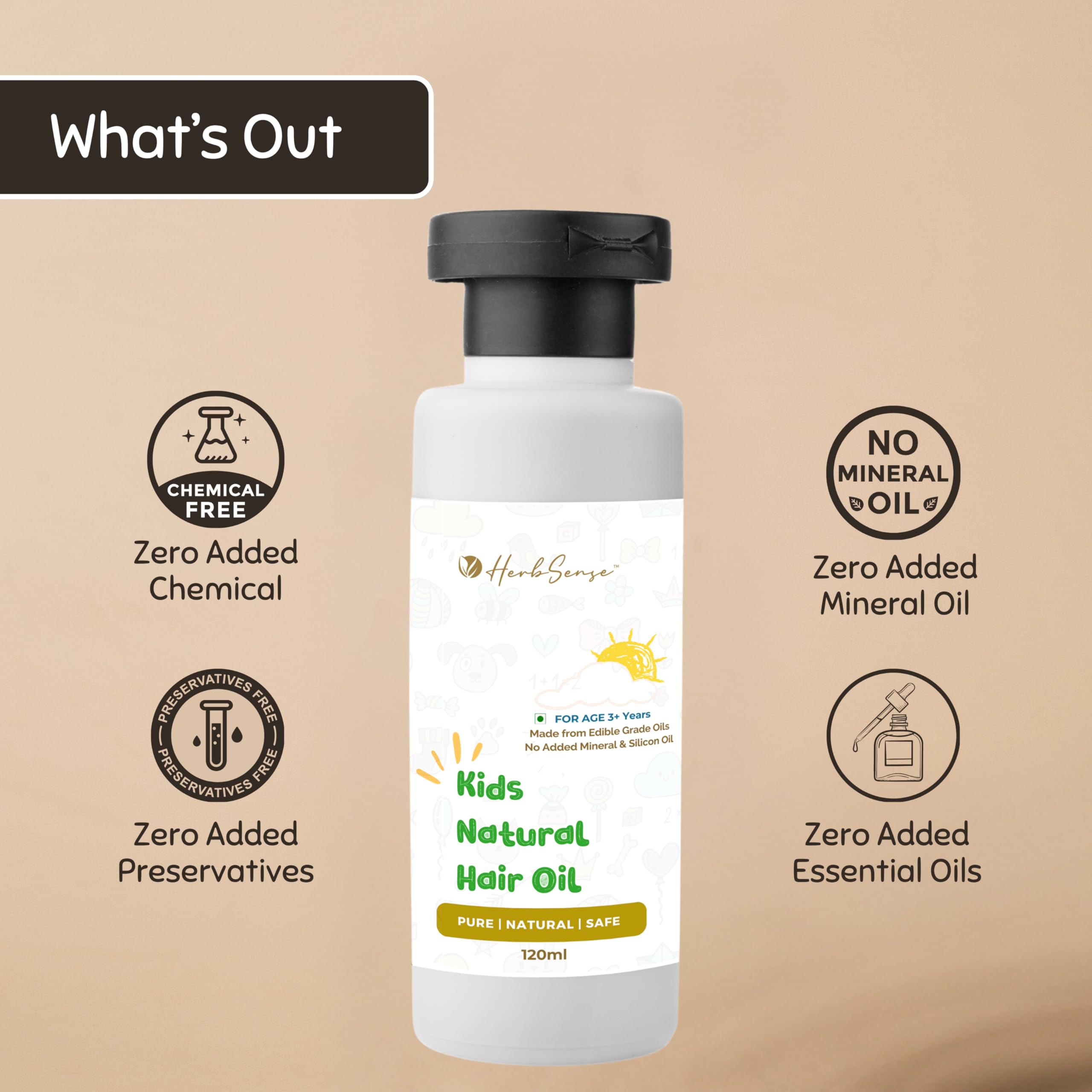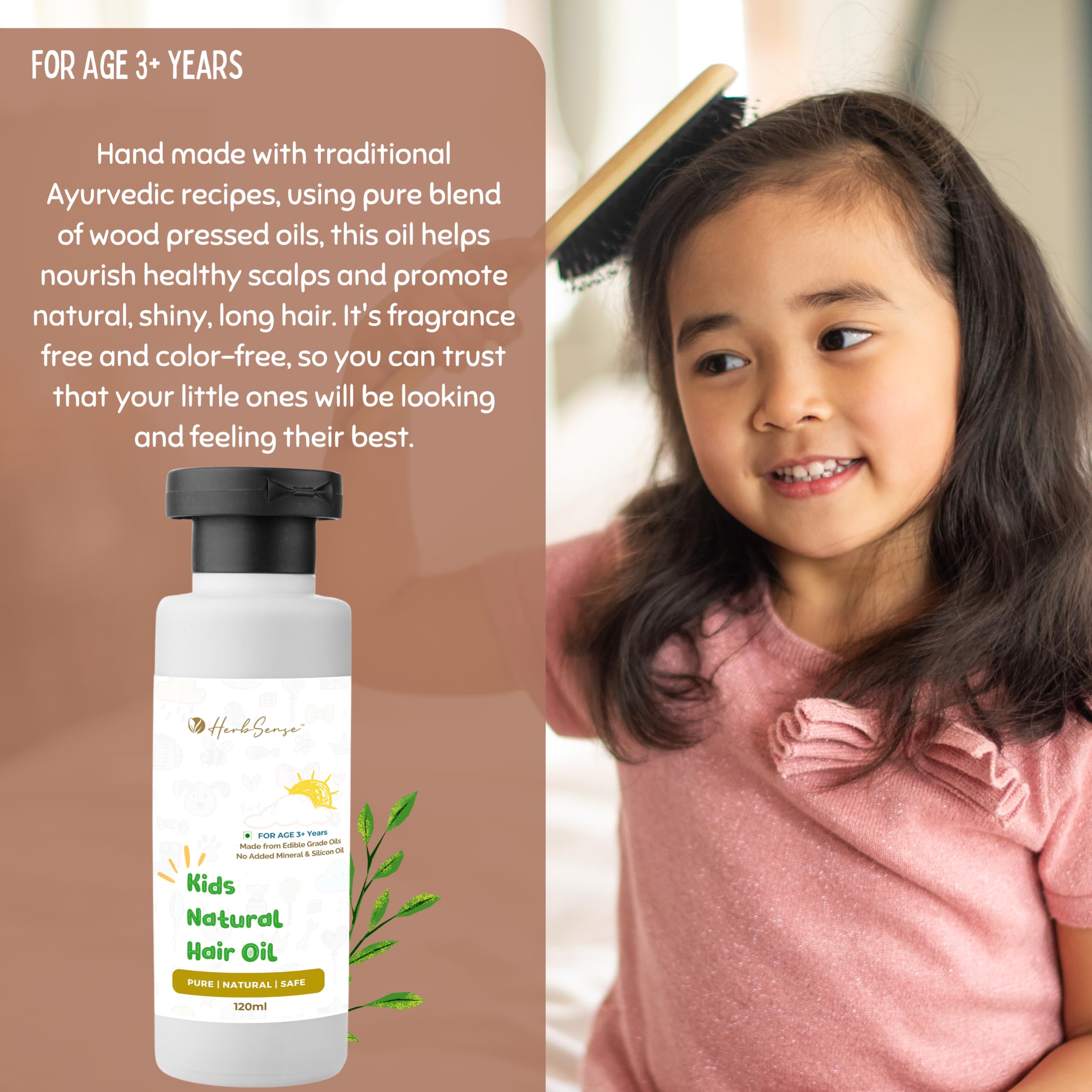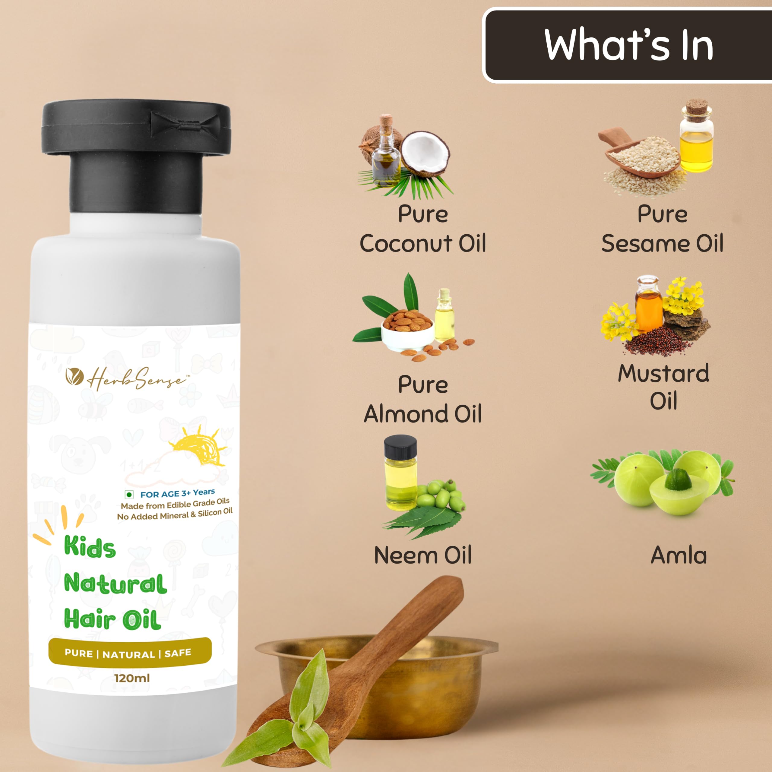 HomeHealth & PersonalHair CareHerbal Hair OilHerbsense Kids Hair Oil - Pure Blend of Wood Pressed Oils & Herbs | For Age 3-12 Years | No Added Essential Oil Fragrance Preservative & Chemical -120ml