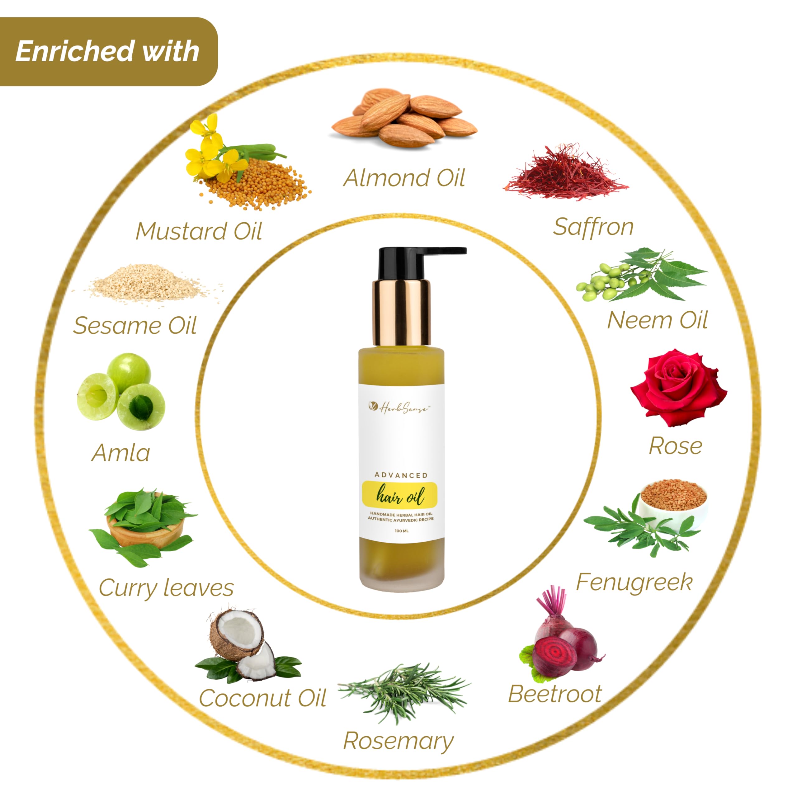 Herbsense Advanced Hair Oil is a special blend of ayurvedic ingredients like Rosemary Amla Curry Leaves Moringa Beetroot Black Seed Fenugreek Mustard Neem Almond Coconut and Sesame for better hair health.