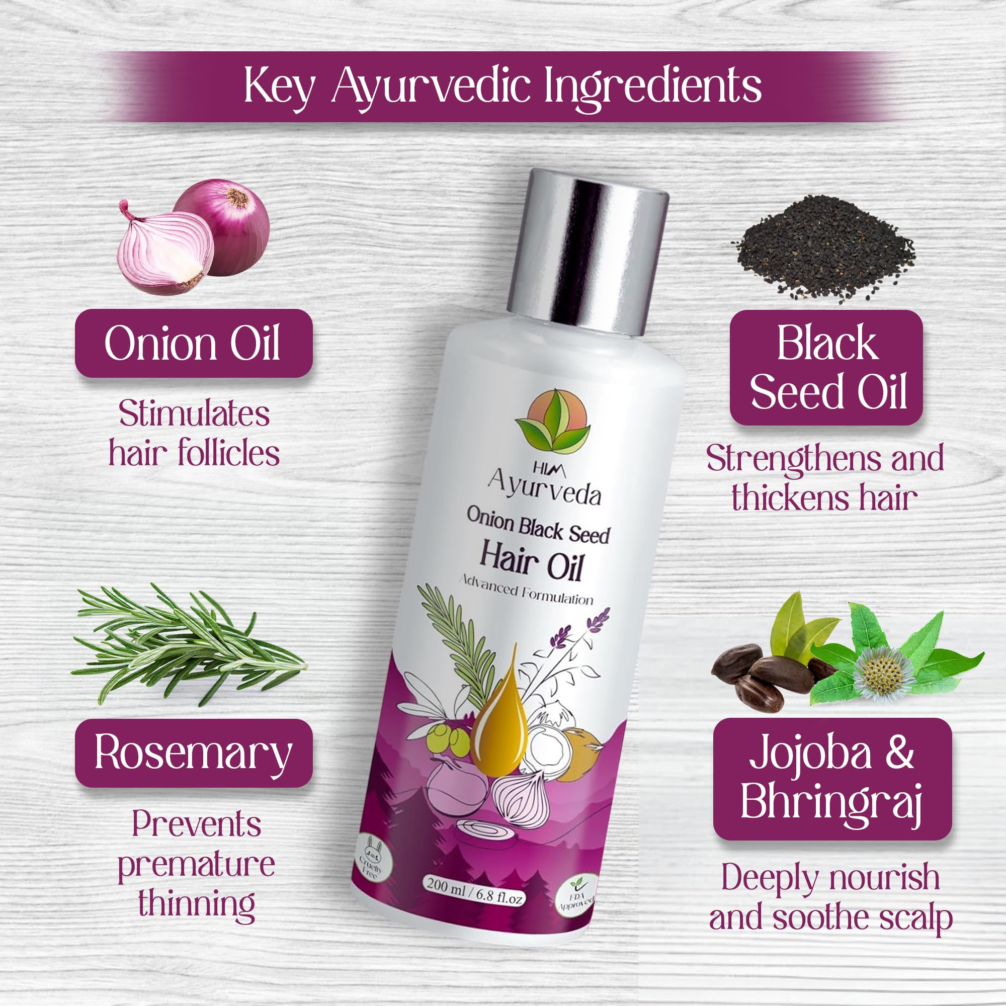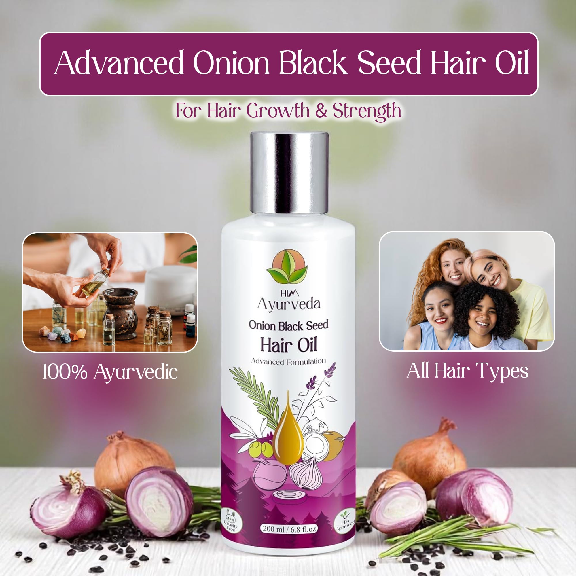 Healthy and strong hair come from y and nutritious hair roots and scalp. Many hair problems such as hair fall hair breakage premature greying etc. are common these days. To get rid of these issues the science of Ayurveda has gifted natural and scientific hair remedy as HIM AYURVEDA Onion Black Seed Hair Oil. HIM AYURVEDA Onion Black Seed Hair Oil is pure natural and free from harsh chemicmineral oils and silicones. This non- greasy hair oil is suitable to all hair types.