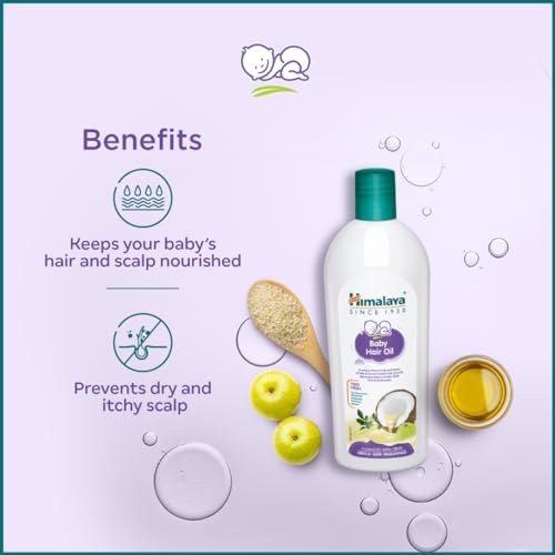 About Himalaya Baby Hair Oil: Himalaya Baby Hair Oil is specially formulated for babies and is designed to nourish scalp and hair. Infused with a blend of oil and herbs Himalaya Baby Hair Oil helps promote hair growth nourish hair and prevent dryness and keeps the scalp moisturized. Benefits of Himalaya Baby Hair Oil Infused with the goodness of Amla Bhringaraja Gotu kola and Methi which are known to promote hair growth and luster Enriched with the nourishing oils of Coconut Sesame Almond and Olive Helps nourish scalp and hair Moisturizes dry and itchy scalp Free from mineral oil alcohol parabens synthetic color and phthalates Dermatologically tested clinically tested Non-sticky and non-staining