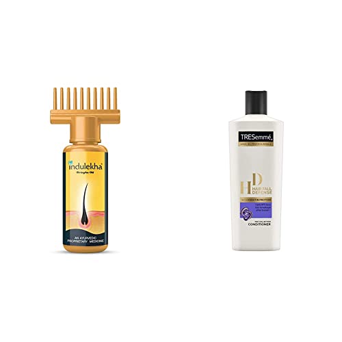 Indulekha Bhringa Hair Oil 100mlIndulekha Bringha Oil is an Ayurvedic proprietary medicine recommended for the regulation of hair and scalp conditions like hairfall dandruff etc. The excellent action of Indulekha Bringha oil is due to the actions of its ingredients and the special manufacturing procedure of the base oil.During the production of Indulekha Bringha Oil the Swethakutaja leaves are dipped in pure coconut milk oil (prepared by cold process technology). This prolonged blending process helps to extract the entire medicinal quality of the leaves and thus makes it an effective ingredient of Indulekha Bringha Oil.Active ingredients along with the base oil create an excellent combination that is extremely beneficial for hair. SvethakutajaIt has anti-inflammatory and anti-dandruff properties. Also known for its antimicrobial properties and hence used for all types of psoriasis (skin disorder) and dandruff. Aloe veraAloe vera contains enzymes which repairs dead skin cells on the scalp. It promotes hair growth prevents itching on the scalp reduces dandruff and conditions your hair. it rejuvenates the hair with its own nutrients giving it more elasticity and preventing breakage. Neem provides anti-protozoal antioxidant anti-inflammatory and antibacterial properties. Neem helps to treat these conditions of hair and cleanse the scalp for healthy hair growth. Bringharaj helps to improve hair growth and colour. Its extracts rejuvenates hair keeping the hair lustrous dark and healthy. It also helps to nurture and condition hair. Amla is the richest source of Vitamin C and antioxidants. It helps maintain youthful hair color and retards premature graying and supports the strength of the hair follicles. Virgin coconut oil is extracted by the cold compression method. It is higher in vitamin content antioxidants minerals fragrance and even the amount of proteinTRESemme Hair Fall Defense Conditioner 190mlLaunched in 1948 TRESemmé was named after renowned hair care expert Edna Emmé. Up until the 1950's TRESemmé was sold only in salons. Today it is available at a shop near you so that you can have salon style hair at home. For over 60 years TRESemmé has built a history of success in 13 countries around the world. From its origins in 1947 and salon expertise TRESemme has been driven by a simple truth: every woman deserves to look & feel fabulous like she has just stepped out of the salon everyday. This range has been carefully selected for its advanced formula. Driven by our salon heritage we work with our stylists to deliver expert solutions from salon quality products without the salon price tag. Our salon inspired products enriched with high quality ingredients help you experience that salon feeling everyday. The Tresemme Hair Fall Defense Conditioner helps reinforce your hair strength and prevents hair fall due to breakage. For longer and stronger hair. Enriched with advanced quality ingredients the formula is scientifically constituted to give you longer stronger & manageable hair with every wash. It works best on damaged and breakage-prone hair.Get this bottle of 200 ml now and give your hair a luscious confident bounce. For best results use daily with TRESemme Hair Fall Defense Shampoo.