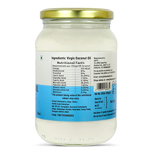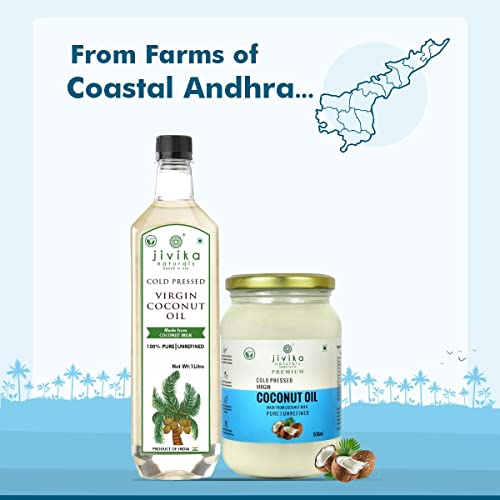 JIVIKA NATURALS/Organics|Virgin Coconut Oil|Cold Pressed Virgin Coconut Oil|Pure Coconut Oil|Natural Coconut Oil|Glass Jar|For Hair & Skin|100% Pure|Extracted From Milk Of Tender Coconuts|500Ml
