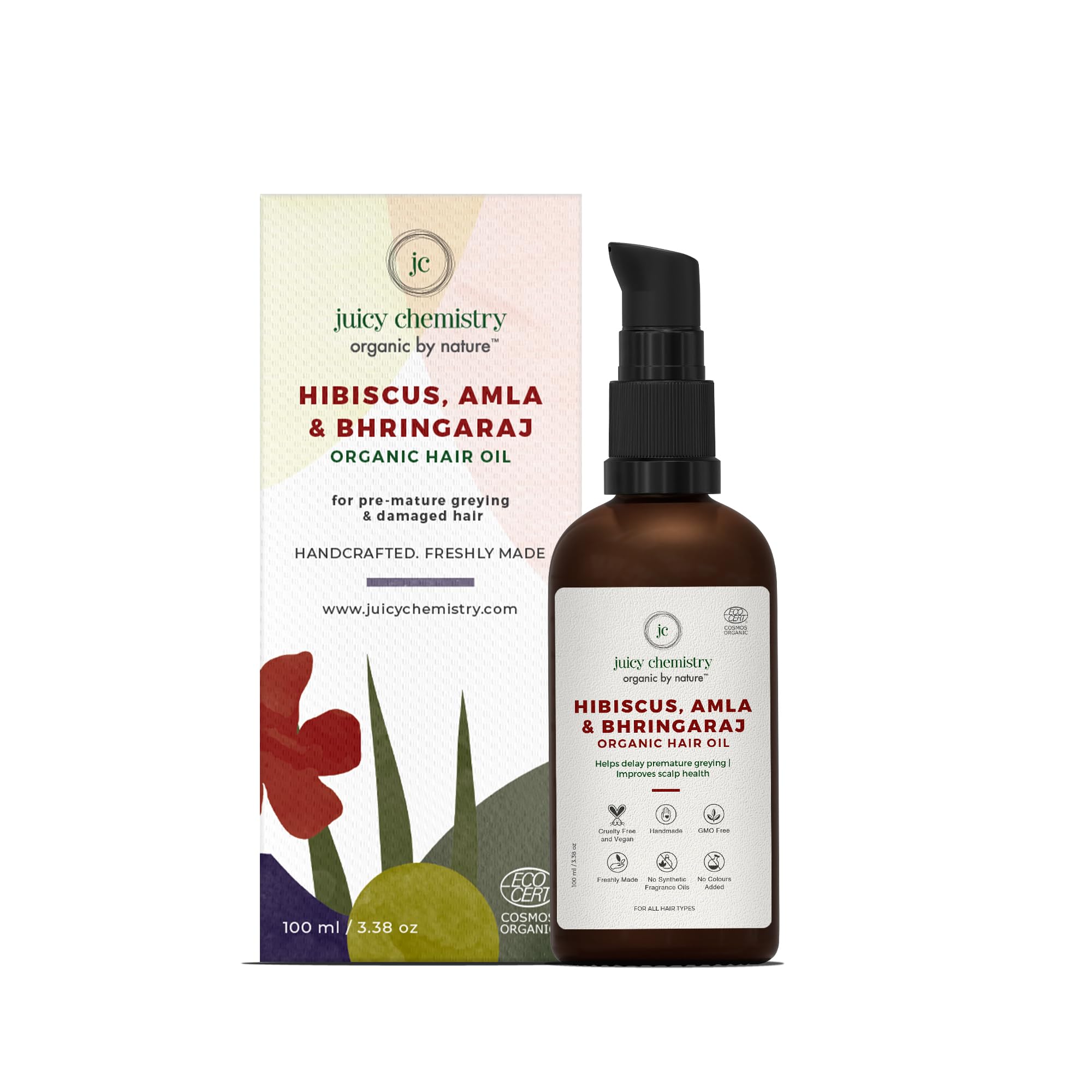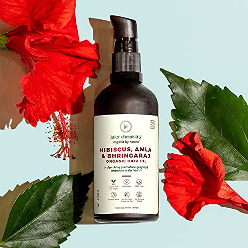 Juicy Chemistry Hibiscus Amla & Bhringaraj Fortifying Hair Oil, 100 g | Natural Ayurvedic Formulation with Clinically Proven 10-Herb Oil Blend | Strengthens Roots, Reduces Hair Fall & Breakage