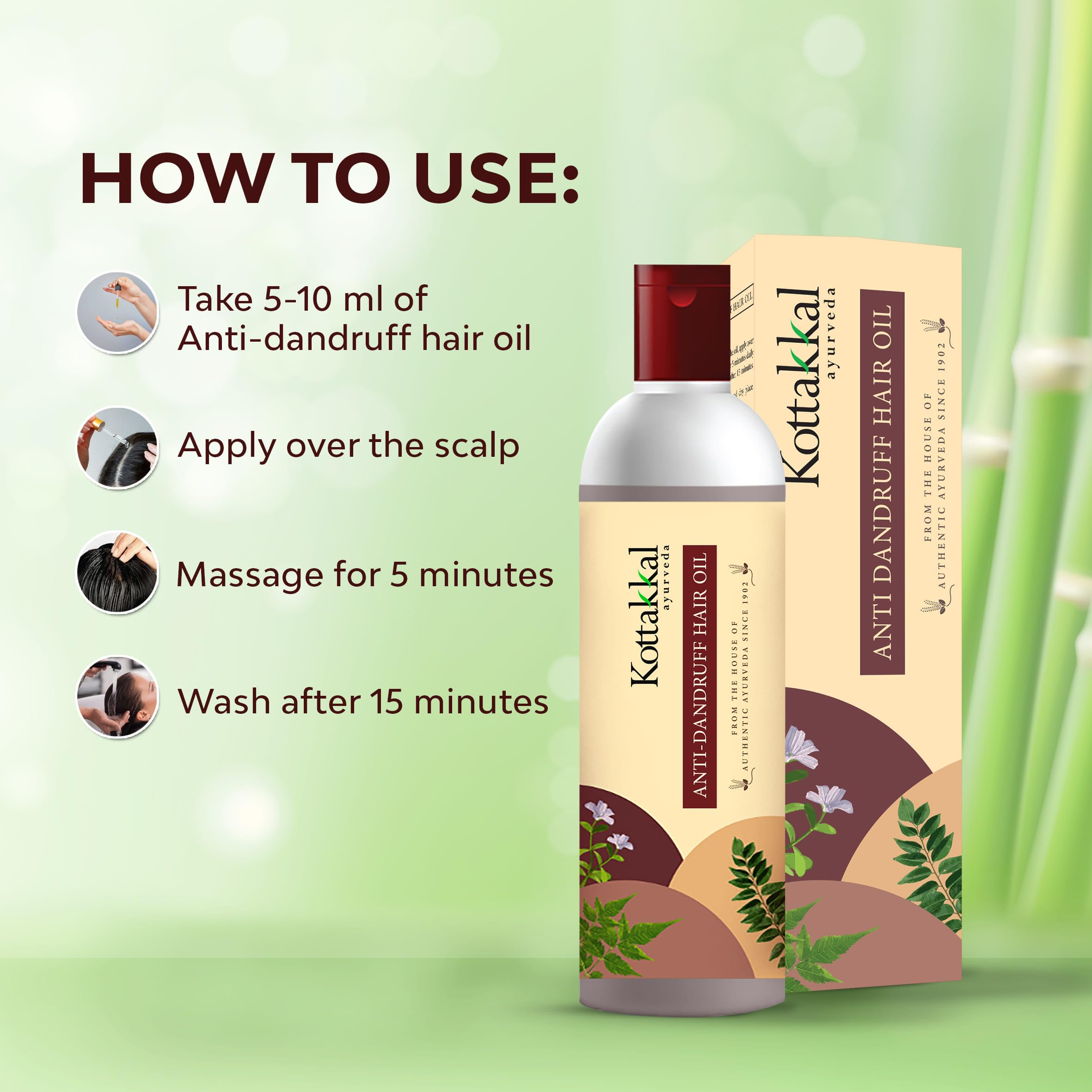 Kottakkal ayurveda Anti Dandruff Hair Oil & Hair Nourishing Oil | No Artificial Colour & Fragrance | Paraben & Sulphate Free