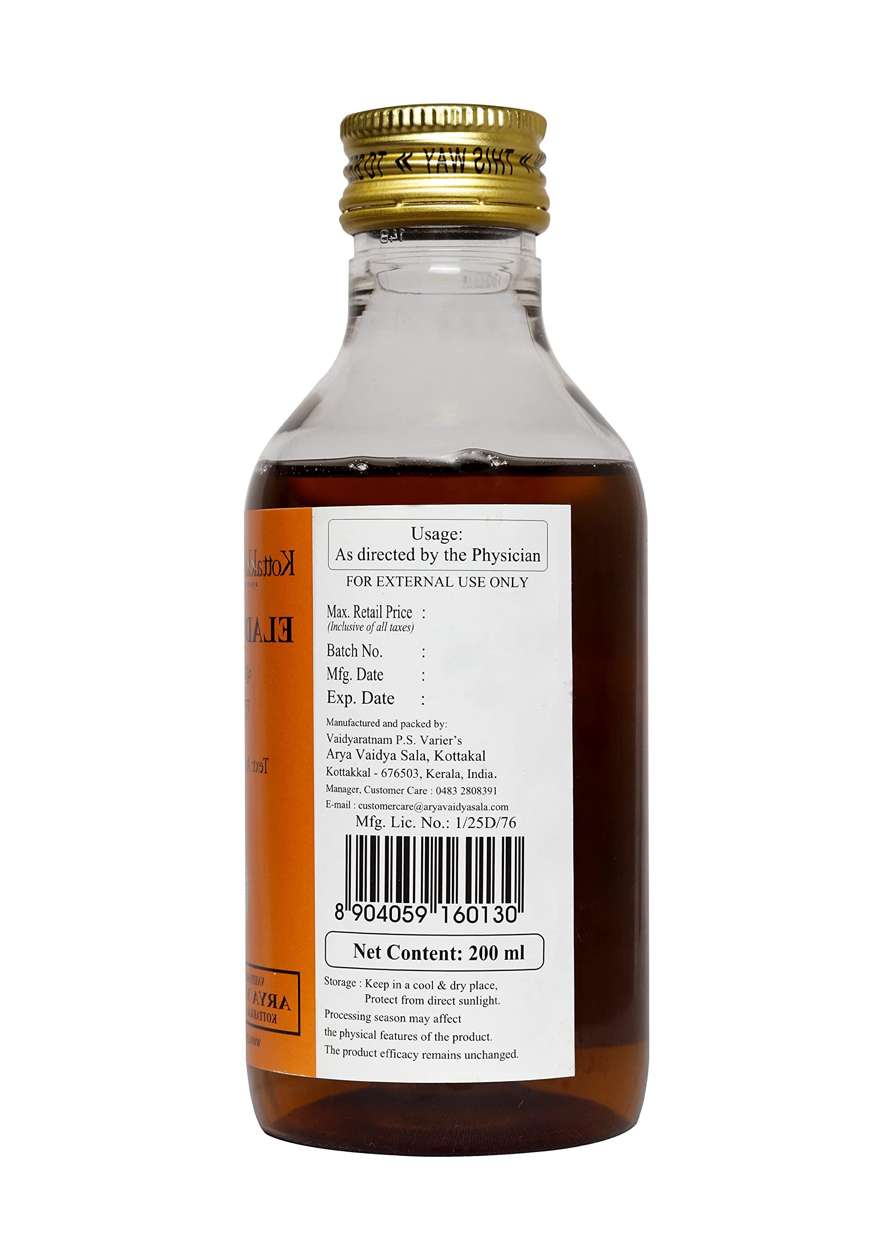 Kottakkal ayurveda Eladi Tailam - 200 ml Herbal Oil For Hair & Skin With Natural Ingredients