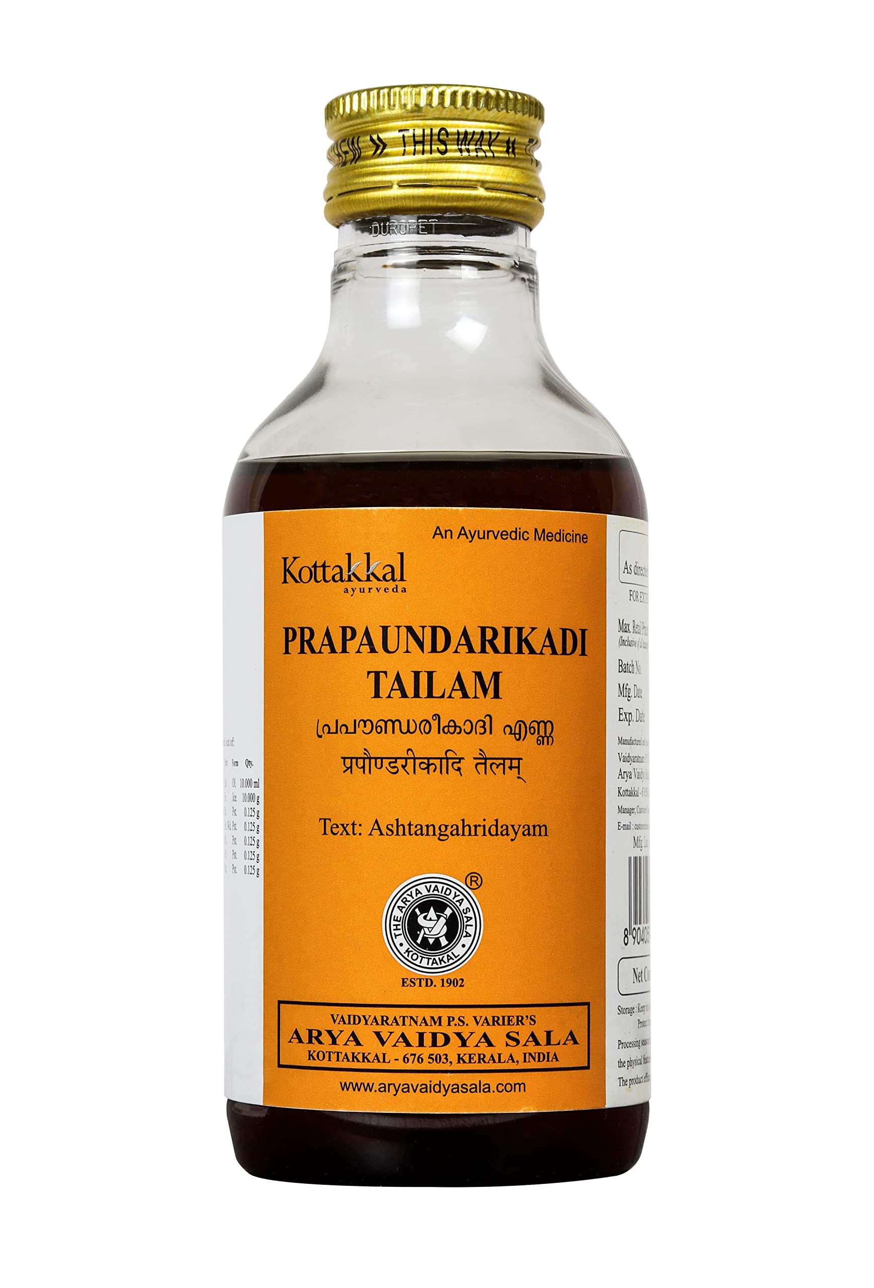 Kottakkal ayurveda Prapaundarikadi Tailam - 200 ml For Healthy & Beautiful Hair - Pack of 2