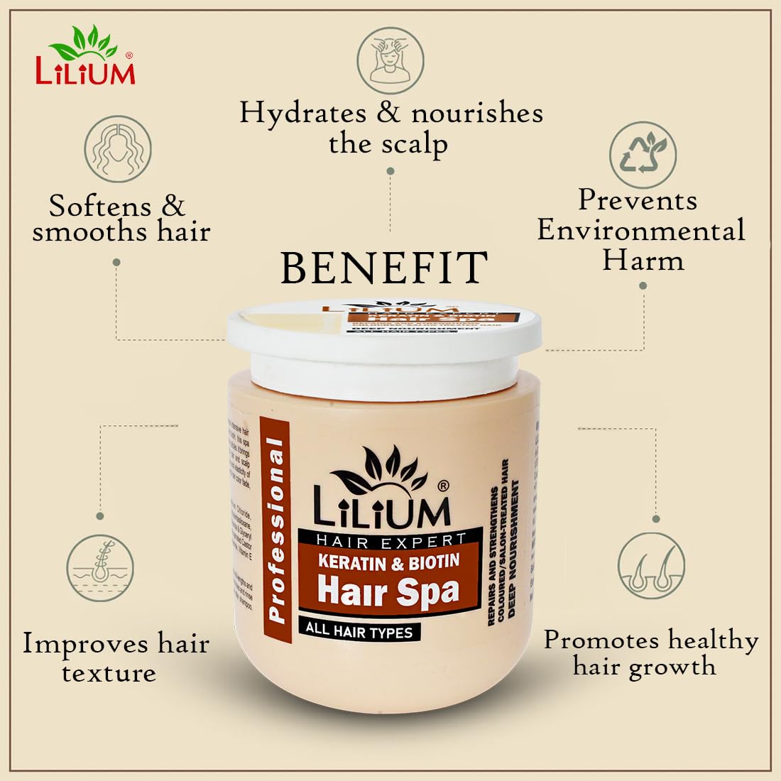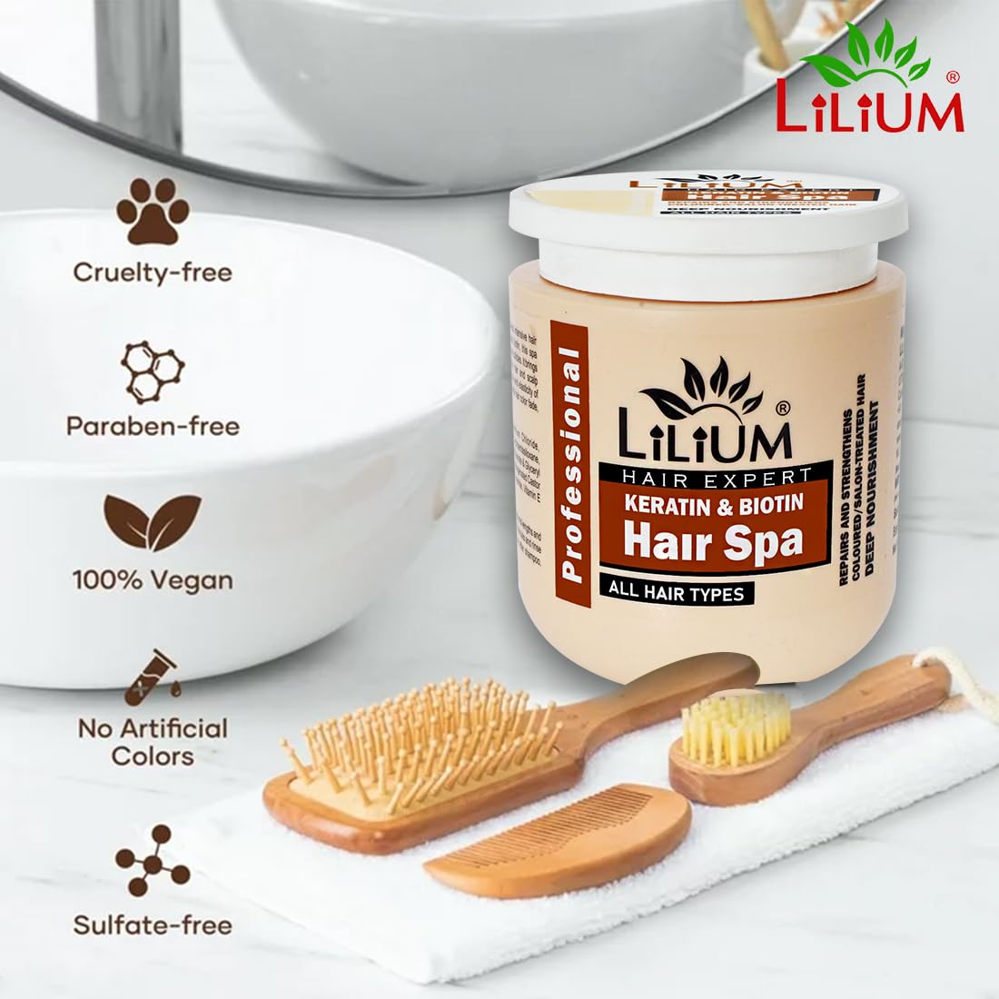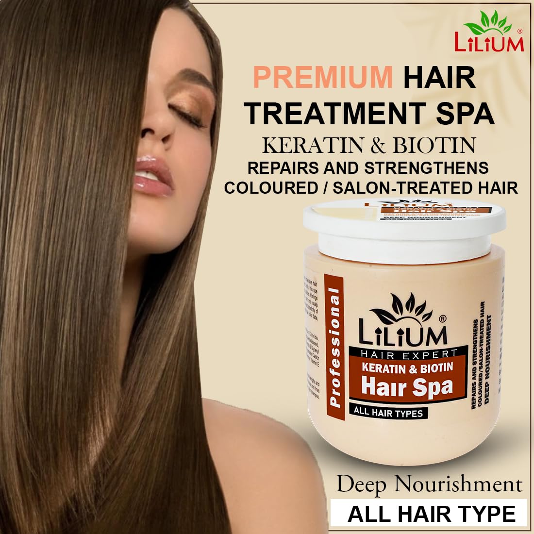 Lilium Keratin & Biotin Hair Spa 800ml | Professional Hair Expert Mask | Repairs & Strengthens Colored/Salon Treated Hairs | Deep Nourishment & Smoothening | Damage Controls