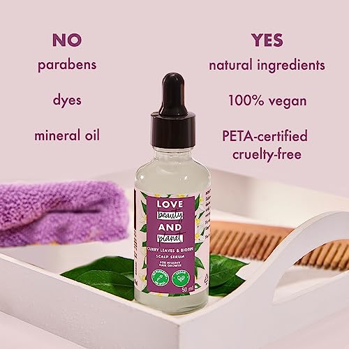 Grow your hair longer thicker & healthier with our scalp serum! It's made with no parabens or dyes and is powered with plant extracts leaving you and the planet a little more beautiful. Formulated with curry leaf extract 100% vegan biotin & AnaGain⢠100% users noticed reduced hair thinning in 28 days* 89% saw visible hair growth in 14 days* & 96% claimed thicker hair in 14 days*. How to use it? Take 5-7 drop & massage it section by section all over your scalp. For the best results apply at bedtime & leave on overnight. Our goal is a carbon footprint so small it's like we weren't even here. We at Love Beauty & Planet have started our journey by loading our products with natural goodness. Our delicate scents are infused with natural and ethically sourced oils and extracts. & our products are free from added harsh chemicals like parabens dyes and sulfates. Love Beauty & Planet is PETA Certified cruelty-free and vegan. Globally Love Beauty & Planet does not test on animals. We are committed to small acts of love that make our planet cleaner greener and more beautiful. *With regular use as per usage direction. Based on consumer study 2023.