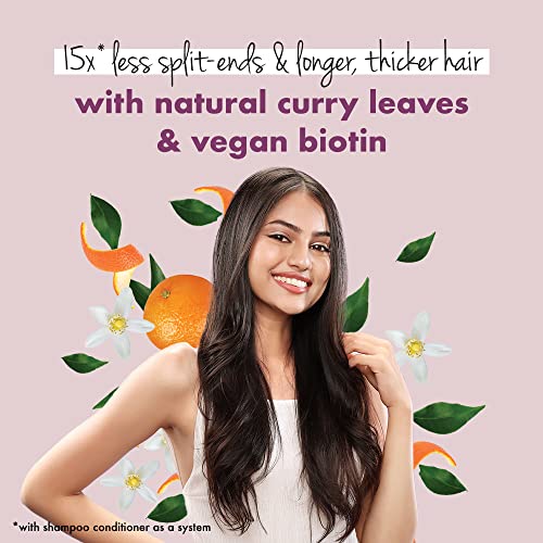 • NATURAL INGREDIENTS Made with naturally derived ingredients like Curry Leaves from Rajasthan to fight split-ends Vegan Biotin to improve hair density and hand-picked Italian mandarin oranges for a mood-uplifting fragrance.