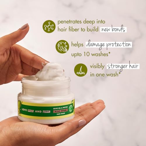 Experience an ultimate bond repair with our olive oil & peptide hair mask. 90% of women felt their hair is softer & smoother in just 1 week * *based on consumer study 2024 This proven formula contains natural Olive oil that is known to deeply nourishes strands. Supplemented with protein & bond repair technology this mask adds a protective layer to your hair helps restore damage and strengthens hair at a cellular level. Olive oil is known to penetrate deep within the layers & intensely repair hair peptide packed with 22 amino acids known to rebuild damaged bonds & promote hair strength & glucose based technology is scientifically proven to penetrate hair fiber and build millions of new bonds. Resulting in visibly stronger hair that's smoother & fuller! Our goal is a carbon footprint so small it's like we weren't even here. We at Love Beauty & Planet have started our journey by loading our products with natural goodness and packing it in bottles made from 100% recycled plastic. Our delicate scents are infused with natural and ethically sourced oils and extracts. All our jars are made up of 100% recycled plastic waste and are completely recyclable. Our caps and pumps aren't made from recycled plastics yet but we're working on it. Our products are free from added harsh chemicals like parabens dyes and guilt. Love Beauty & Planet is PETA Certified cruelty-free and vegan. Globally Love Beauty & Planet does not test on animals. We are committed to acts of love that make our planet cleaner greener and more beautiful.
