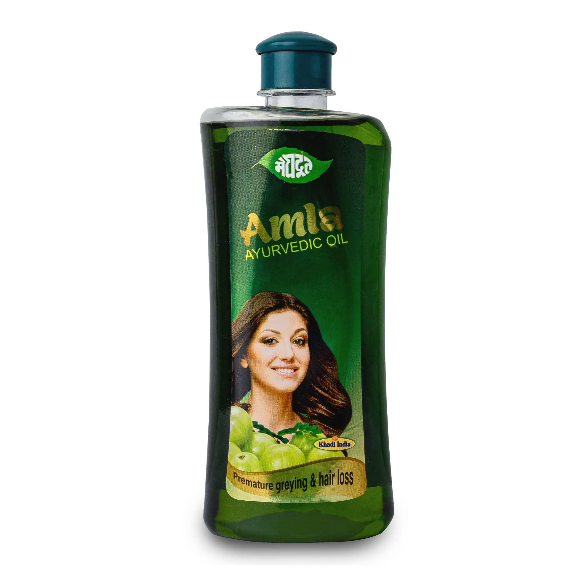 Meghdoot Amla Hair oil is an Ayurvedic oil which provides nourishments to hair and make them strong and long.The Natural ingredients helps prevention of many hair issues. Key Ingredients includes natural extracts of Aloevera leaves neem leaf Mehandi Leafs Bhrami Bhringraj leaves and methi seeds. Apply Small quantity on to the scalp and hair and massage for few minutes. Amla is known to be a power fruit for your hair. Amla helps nourishes your Scalp from within and makes hair strong from root to tip. Amla reduces the hair loss issue. Amla tel as know in india is used in many house and is rich source of many vitamins and minerals. Regular use of amla oil can prevent dandruff and maintain the natural color of hair for long time. Amla stimulates growth and makes hair thick. Brahmi is useful for scalp skin and has anti inflammatory and cooling effects. If you found any issues with our product please reach to us.Meghdoot Amla Hair Oil is a nourishing Ayurvedic oil enriched with natural extracts of amla aloe vera neem mehandi brahmi bhringraj and methi. This traditional formulation is designed to help support hair strength reduce breakage and promote the appearance of longer thicker hair. Suitable for all hair types the oil can be used regularly to help maintain a healthy scalp reduce dryness and improve overall hair texture. Free from harmful chemicals and synthetic additives it offers a natural way to care for your hair using time-tested Ayurvedic ingredients.