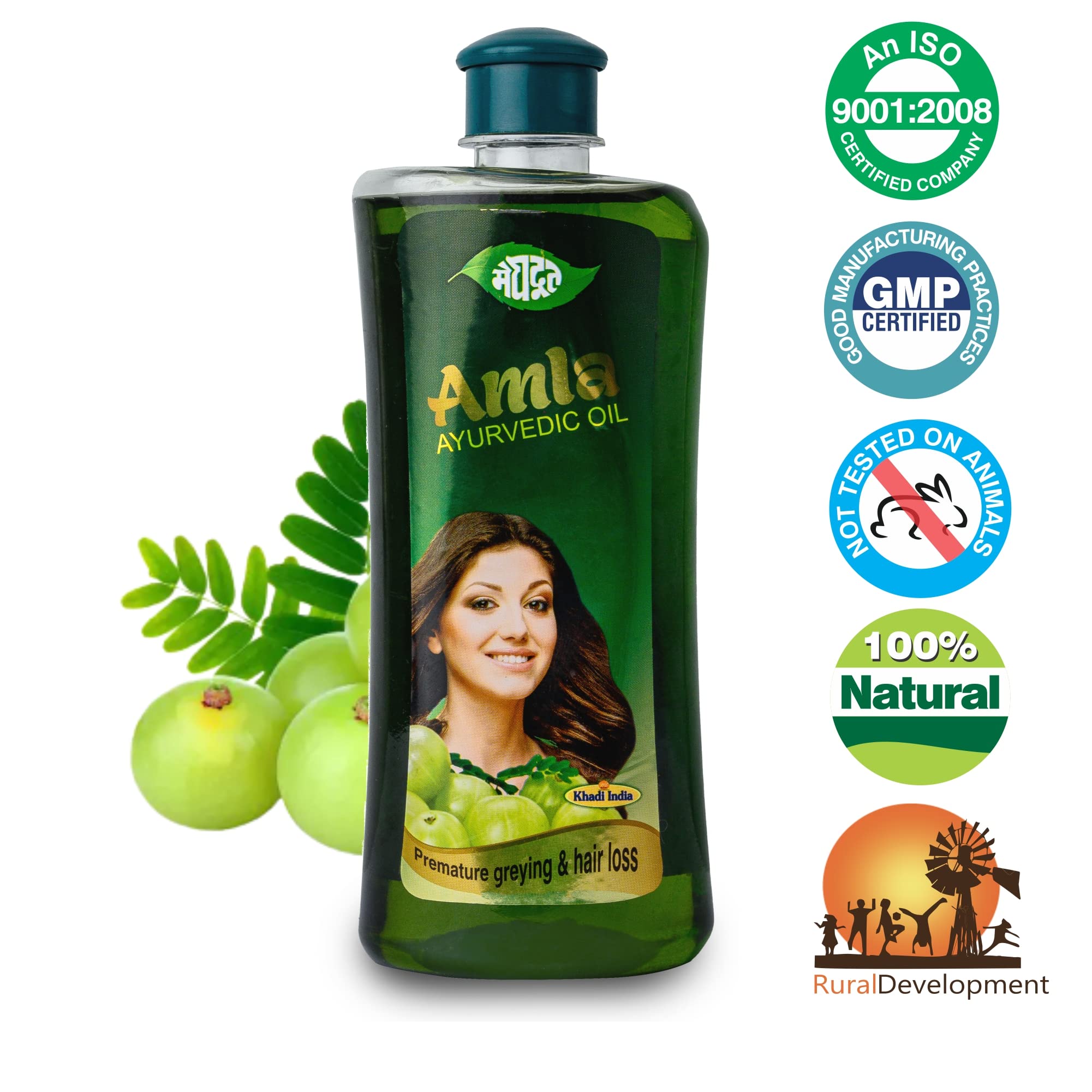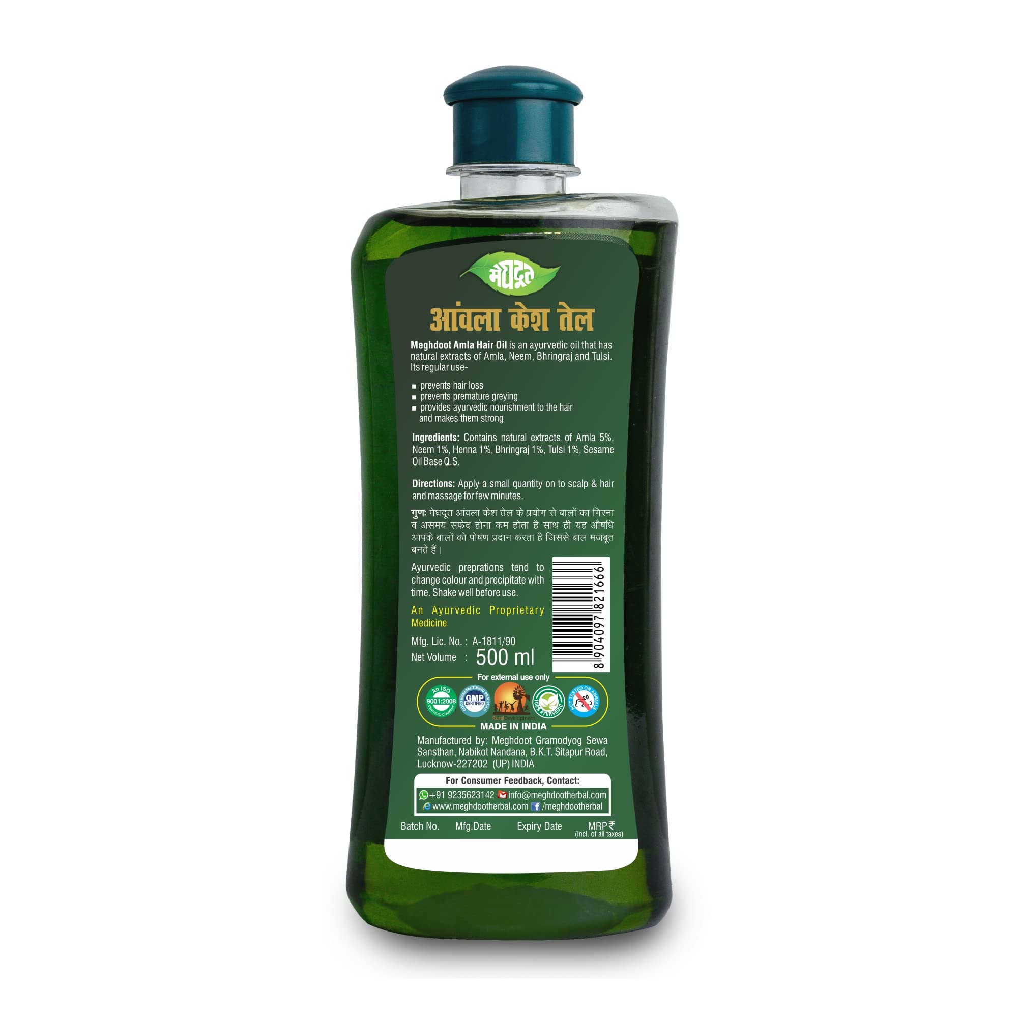 meghdoot amla hair oil with natural ingredients extracted from aloevera neem mehandi brahmi bhringraj and methi amla ka tel for strong long and thick hair for men and women 500ML (Pack of 1)