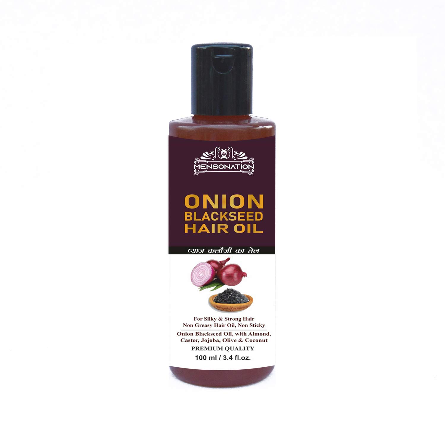 Mensonation onion black seed hair oil is a non sticky non greasy and fast absorb hair oil with onion black seed oil blended with almond castor jojoba olive & coconut oils. Regular use helps bring silkiness and strength to tresses and improves the way hair looks feels and behaves. Made with 100% pure cold pressed oils 100% free of hexane mineral oil and silicone for holistic hair care. onion black seed hair oil is a non sticky non greasy and fast absorb hair oil with onion black seed oil blended with almond castor jojoba olive & coconut oils. Regular use helps bring silkiness and strength to tresses and improves the way hair looks feels and behaves. Made with 100% pure cold pressed oils 100% free of hexane mineral oil and silicone for holistic hair care. onion black seed hair oil is a non sticky non greasy and fast absorb hair oil with onion black seed oil blended with almond castor jojoba olive & coconut oils. Regular use helps bring silkiness and strength to tresses and improves the way hair looks feels and behaves. Made with 100% pure cold pressed oils 100% free of hexane mineral oil and silicone for holistic hair care.