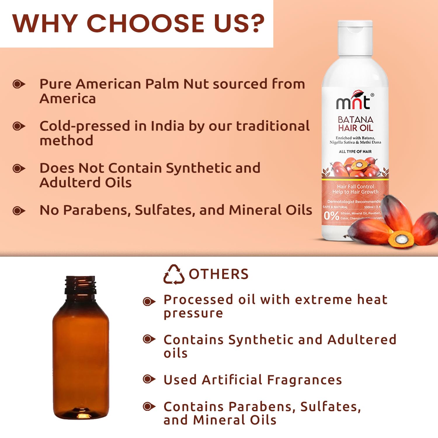 MNT Batana Oil for Hair Growth with Methi Dana & Curry Leaf | Promotes Thicker Shiny Stronger & Healthy Hair | Pure Batana Oil for Hair Growth and Hair Fall Control | 100 ml