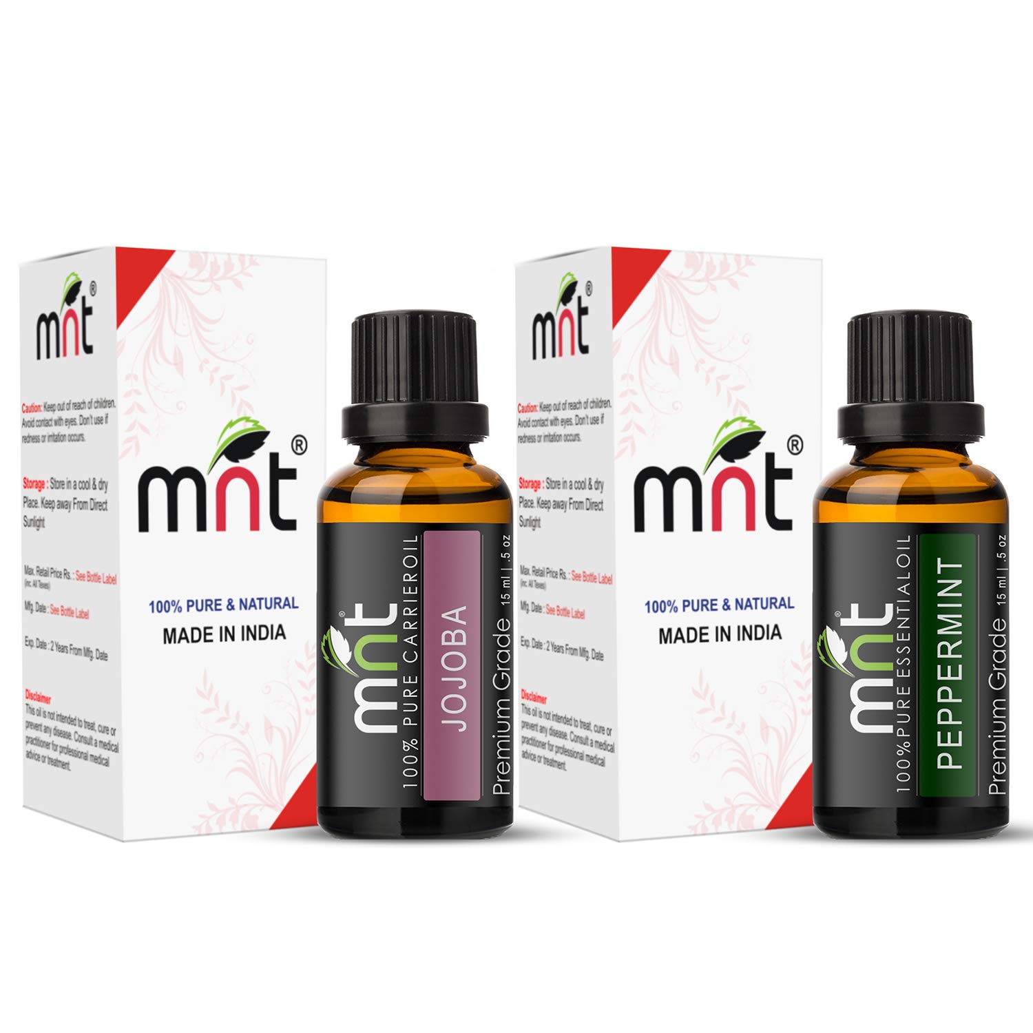 MNT Combo of Jojoba Oil and Peppermint Oil For Hair Growth Skin care (Each 15ML) - 100% Pure Natural Oil