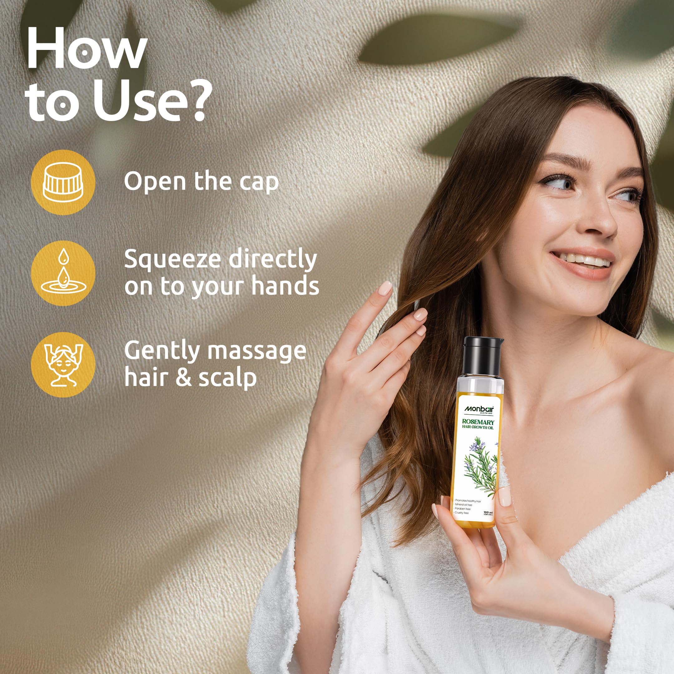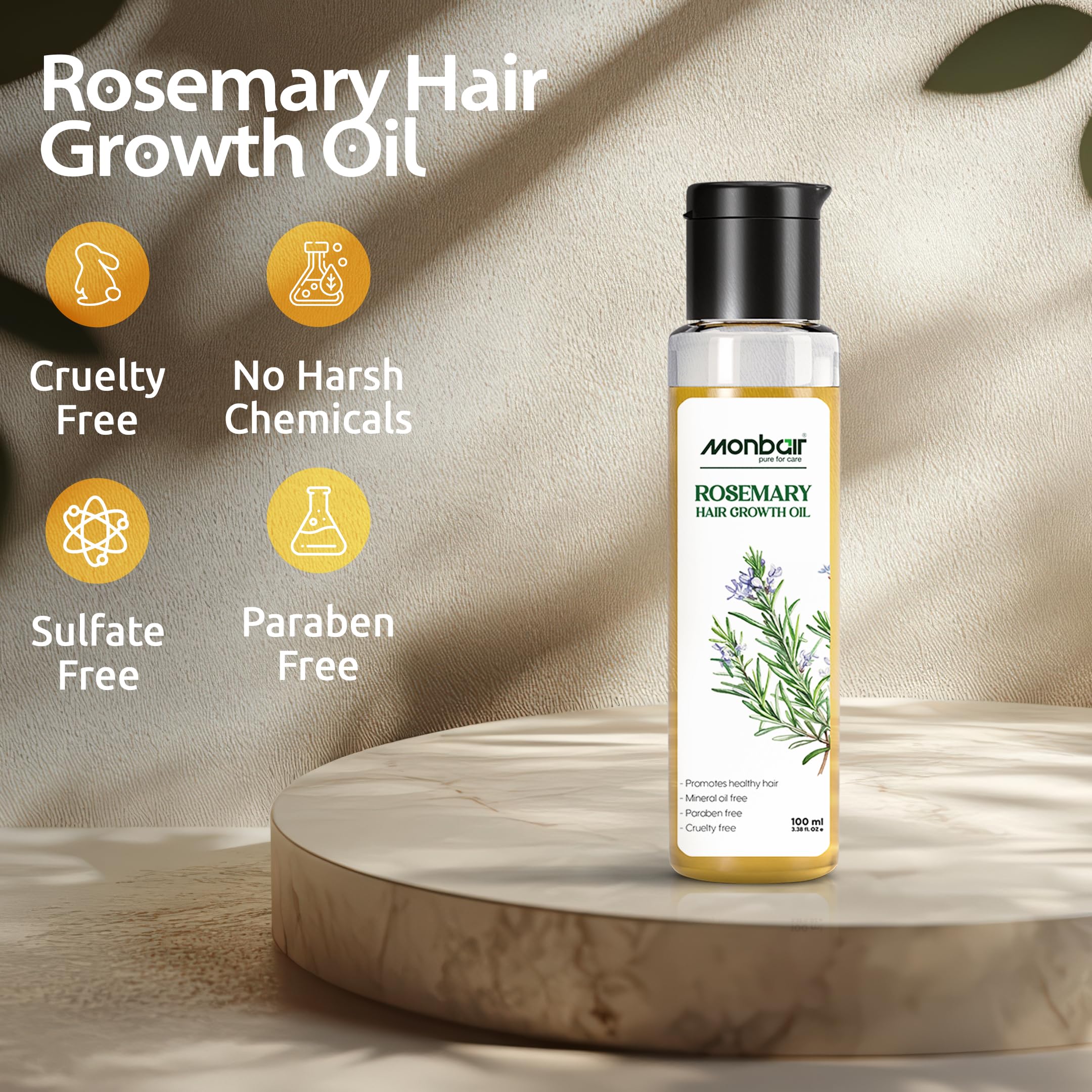 Monbair Rosemary Hair Growth Oil - Infused with Biotin Jojoba & Castor Oil for Strong Voluminous Hair | Natural Hair Thickening & Strengthening - 100ml | Nourishing Scalp Treatment