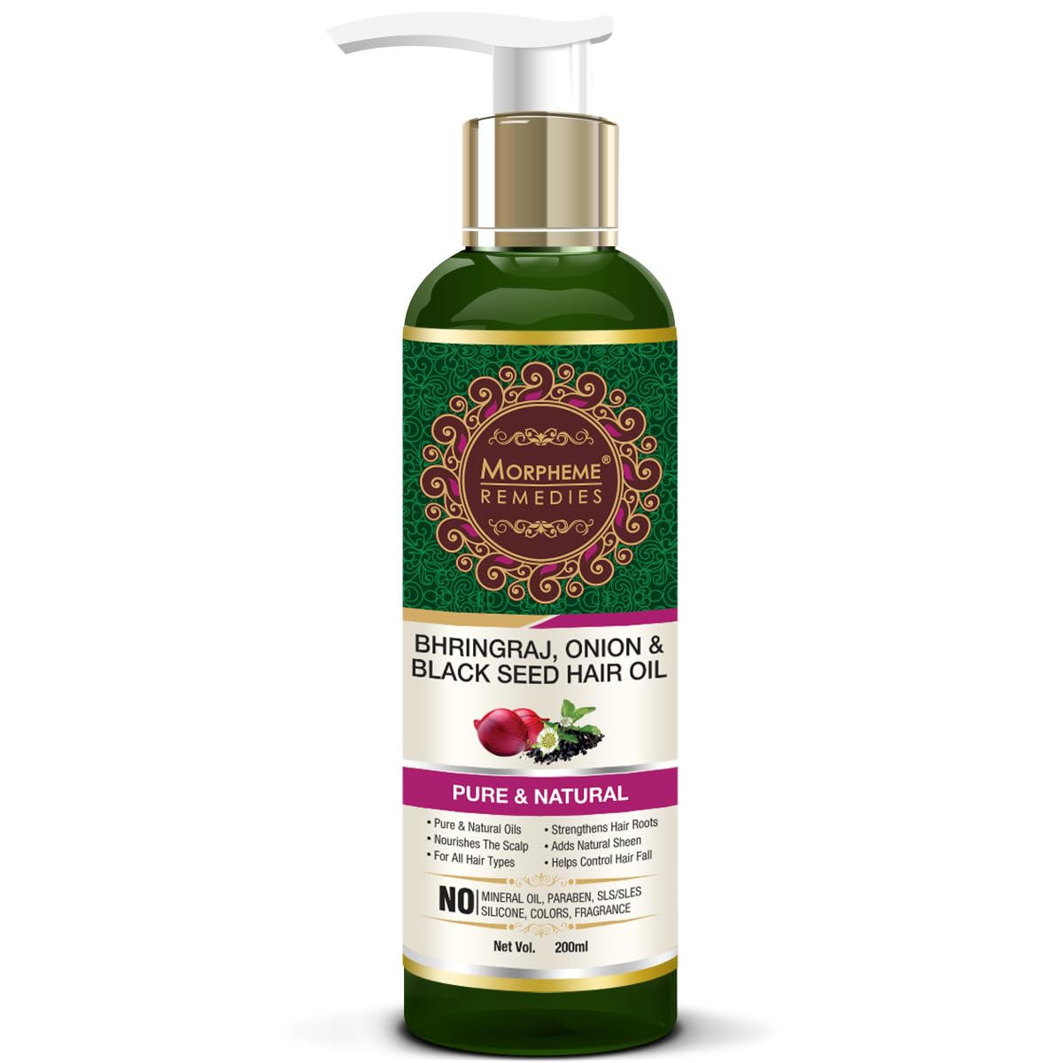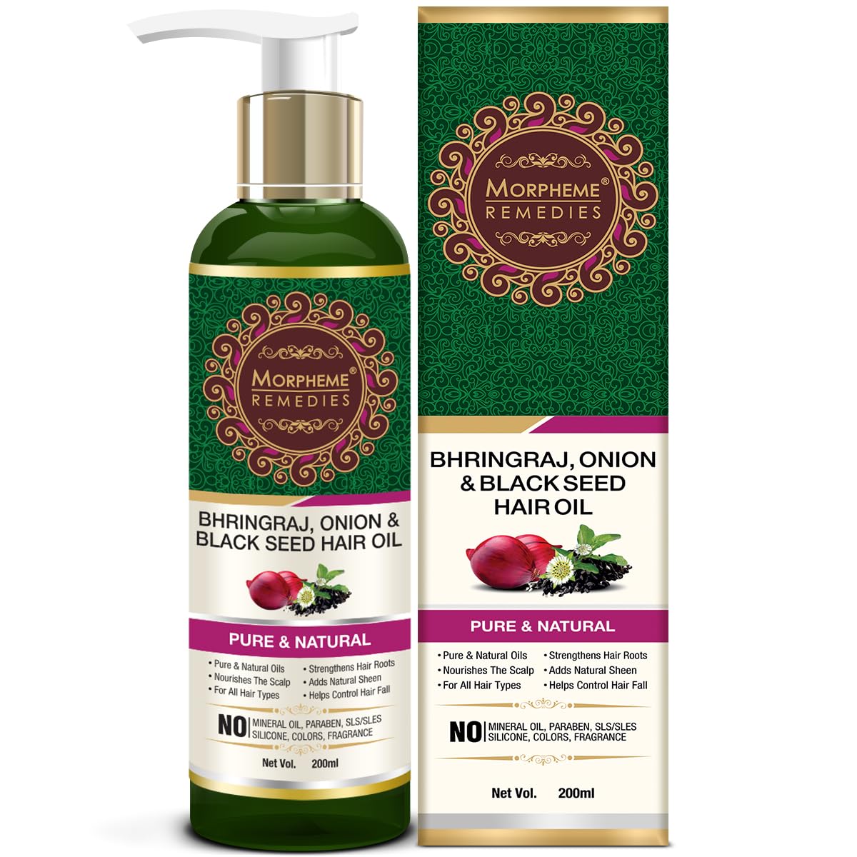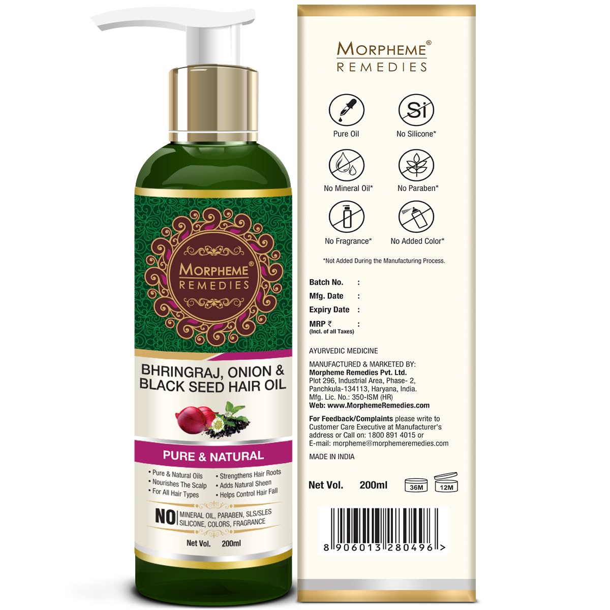 Morpheme Remedies Bhringraj Onion & Black Seed Hair Oil - Supports Hair Growth - Controls Hair Fall - No Mineral Oil & Silicones 200 ml (MORPH861)
