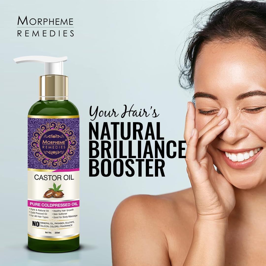 Skin Nourishment: Morpheme Remedies Castor oil supports skin nourishment. With regular use of this oil your skin texture can be enhanced. It can be used for body massage to moisturise the skin nicely