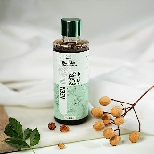 Nat Habit Cold Pressed 100% Pure Neem Oil for Skin & Hair | Zero Preservatives | Body Massage Oil, Hair Oil - (200 ml)