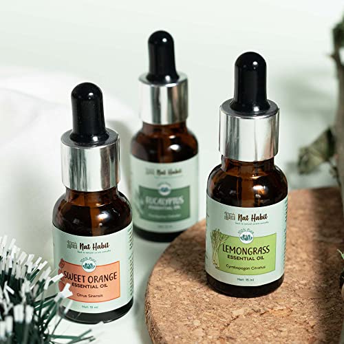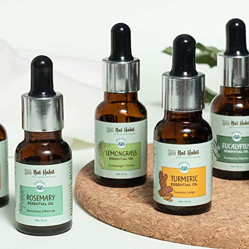 Nat Habit Pure Lemongrass Essential Oil Therapeutic Grade, Steam Distilled | Acne, Dandruff, Blemishes, Detan, Stress | Aromatherapy, Diffuser Oil, 15ml