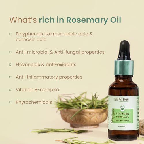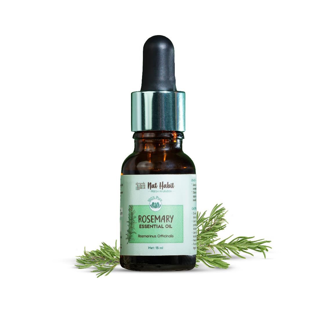 Nat Habit Pure Rosemary Essential Oil For Women & Men, Hair Growth, Hair Fall & Acne, 100% Natural & Therapeutic Grade - 15ml