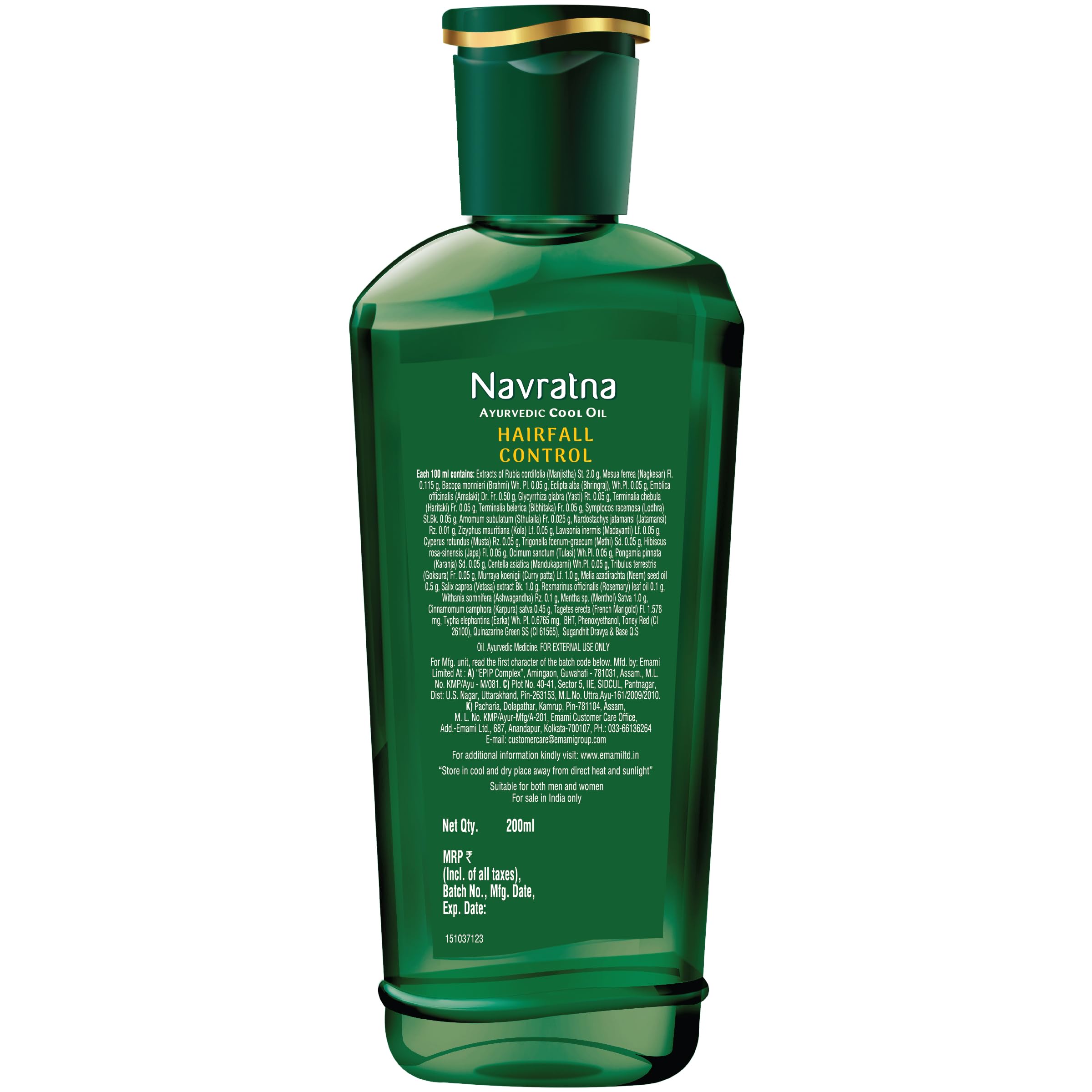 Introducing Hairfall Control Oil from Navratna- Indias leading stress-relief oil. With Navratnas expertise in stress relief regular massage with Navratna Hairfall Control Oil not only helps to reduce stress but also helps to control hairfall caused due to stress It is a combination of traditional Ayurvedic herbs like Ashwagandha that are known to relieve stress and other effective ingredients like Rosemary Curry Leaves etc. that are known to control hairfall