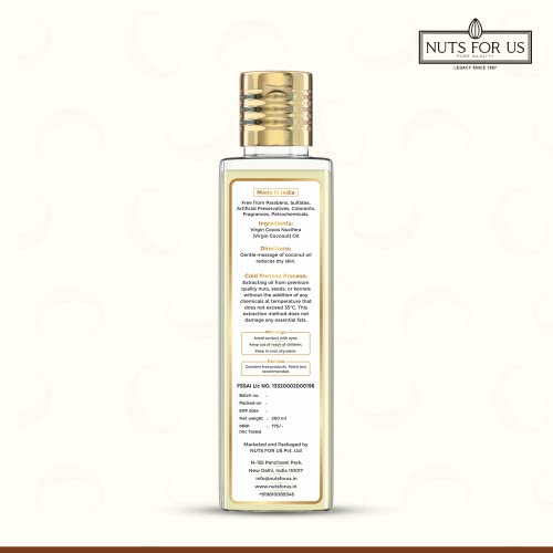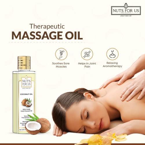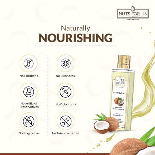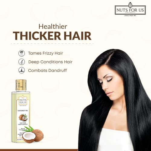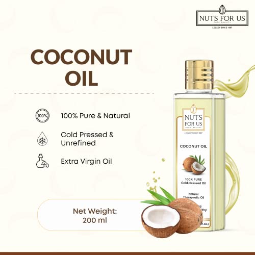 Nuts for us Cold Pressed Coconut Oil for Healthy Hair 200ml Skin Face Massage - 100% Pure Natural Virgin Nariyal Tail