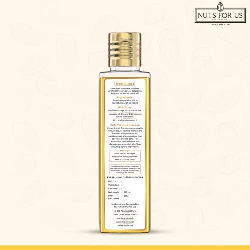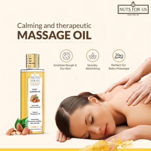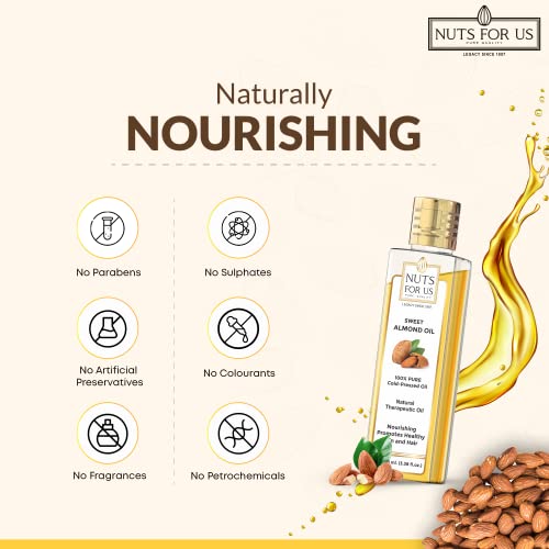 Nuts For Us Cold Pressed Sweet Almond Oil 100ml | Natural Badam Tel for Hair Growth Glowing Skin & Face Therapeutic Massage