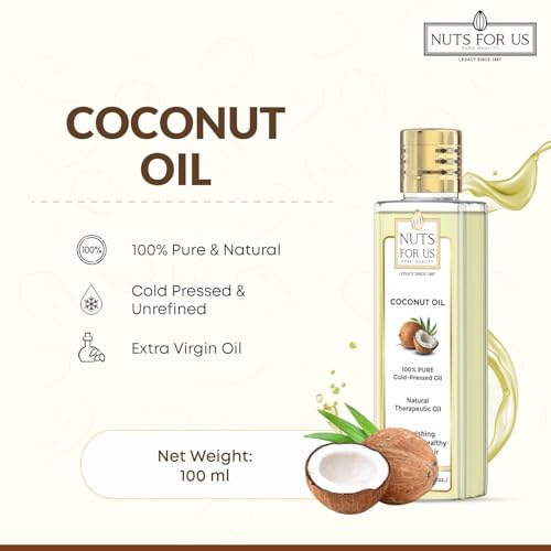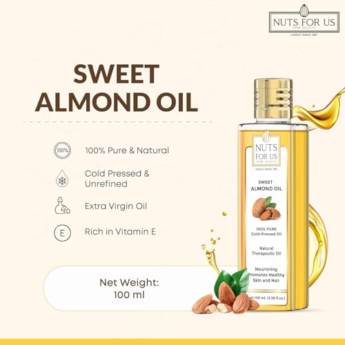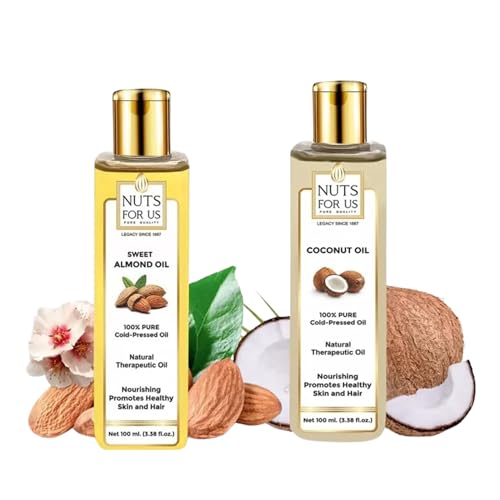 Nuts For Us Coconut Oil Pack of 1 is a natural cold-pressed oil derived from handpicked and hand sorted coconuts. Our philosophy of source to skin at Nuts For Us is embodied in our range of cold-pressed oils. Our cold-pressed Coconut Oil is derived with a method to retain to all natural and nourishing properties of the coconuts. Our oil is undiluted preservative free chemical free with no additives and no fragrance added. Our oil is certified and edible. Quantity is 100ml Form Sold is Liquid Made in India Cold Pressed Edible Coconut Oil. Vegetarian It is a natural cold-pressed oil derived from handpicked and hand sorted dried coconuts. Our oil is undiluted preservative free chemical free with no additives and no fragrance added. Consumption of one teaspoon of coconut oil every morning to improve digestion and boost energy levels for throughout the day. This oil improves skin complexion and tone while reduces signs of aging. It can be used to prevent stretch marks during pregnancy and for others with dry skin syndrome. It can be used as a natural makeup remover and a night cream for medium to dry skin. It can be used as deep conditioner for hair. It enhances hair quality and boosts hair growth.oil is undiluted preservative free chemical free; It has no additives and fragrance. Nuts For Us Cold Pressed Sweet Almond Oil sourced from the finest almonds this pure natural badam tel is rich in vitamins antioxidants and essentil fatty acids that provide a multitude of benefits. Perfect for hair growth radiant skin and therapeutic massage this almond oil is a must-have in your self-care routine. Nuts For Us Cold Pressed Sweet Almond Oil (200ml) comes in a pack of 2 ensuring you have enough to enjoy long-lasting benefits. Use it for daily hair care massage therapy or as a natural face and body moisturizer for healthier glowing skin.