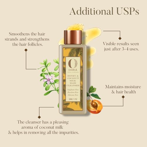 Ohria Ayurveda Honey & Coconut Milk Hair Cleanser | Free from Sulfates, Parabens & Silicones | Ayurvedic Ingredients | Hydrates & Revitalizes Dry, Damaged Hair | For All Hair Types | 200ml