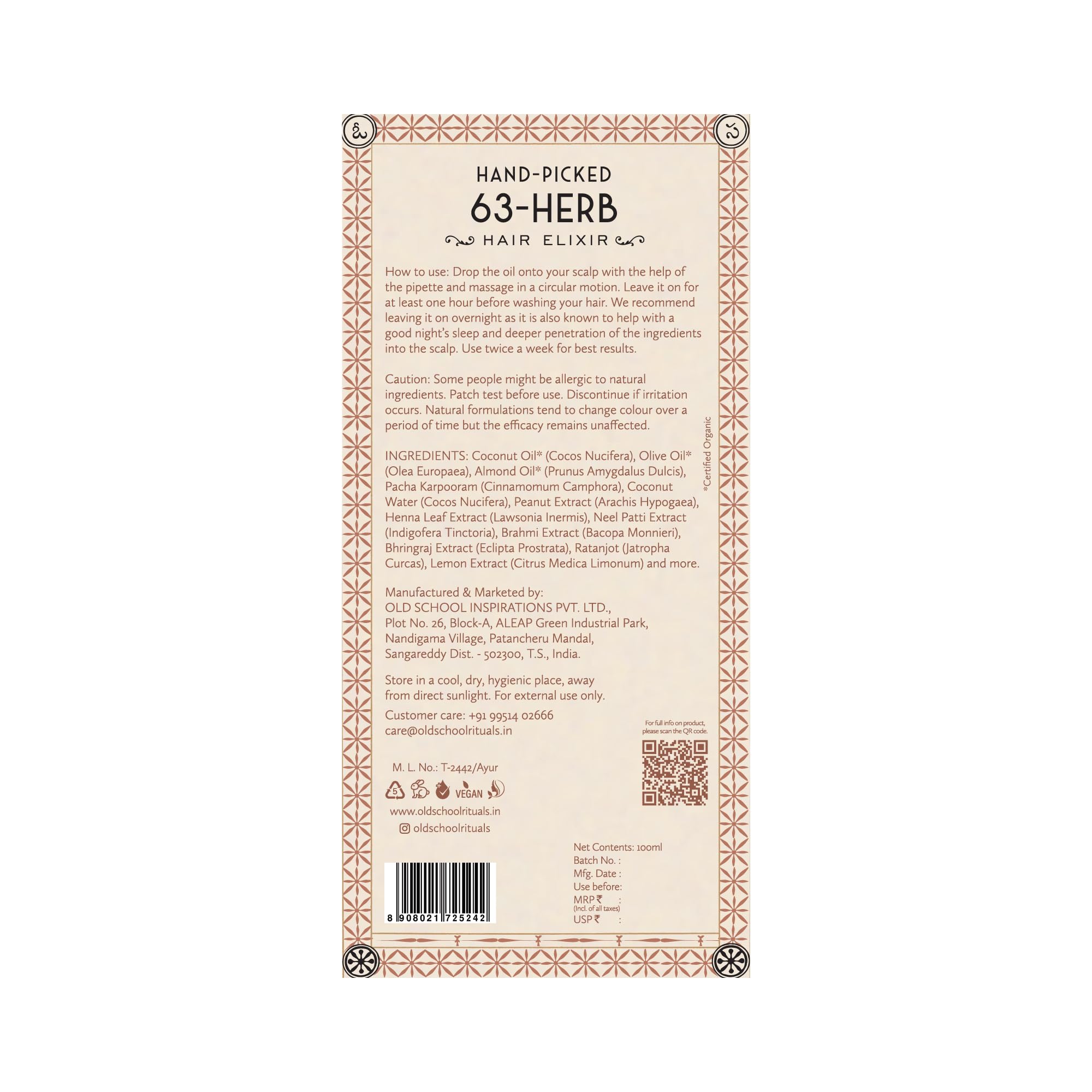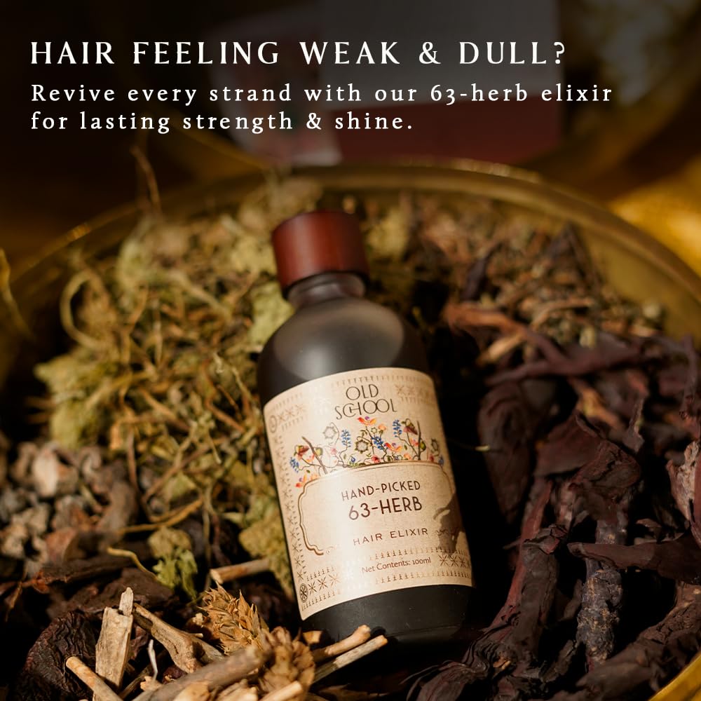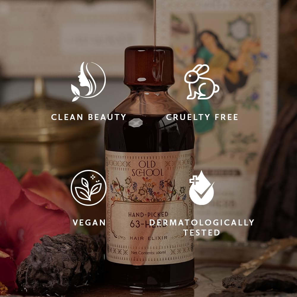 Old School Rituals 63-Herb Hair Oil Elixir | With Coconut Bhringraj Hibiscus Amla & Vetiver | Strengthens Roots Reduces Hair Fall Promotes Growth | Natural & Clean Beauty Formula - 100ml