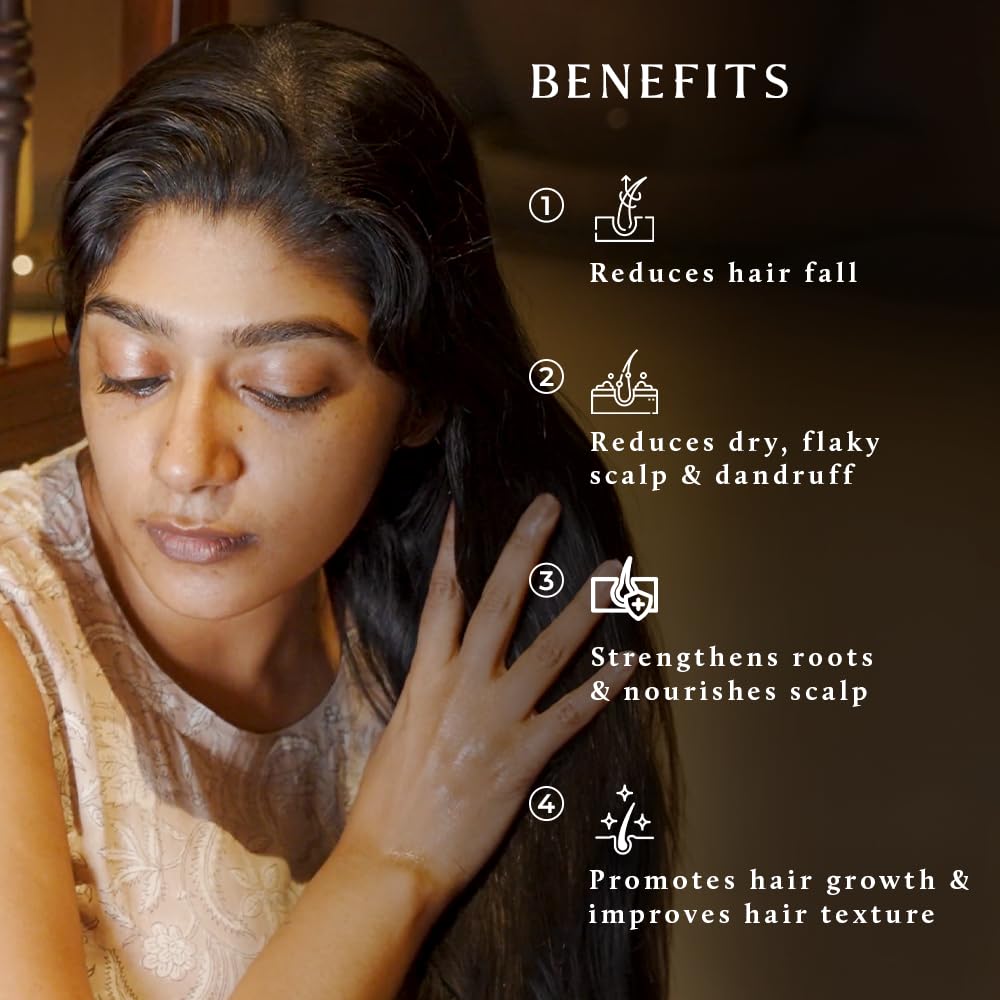 NATURAL REMEDY FOR HAIR FALL & DANDRUFF: A clean non-toxic formulation that tackles common concerns like hair fall flaky scalp and weak roots – without parabens sulphates or mineral oils.