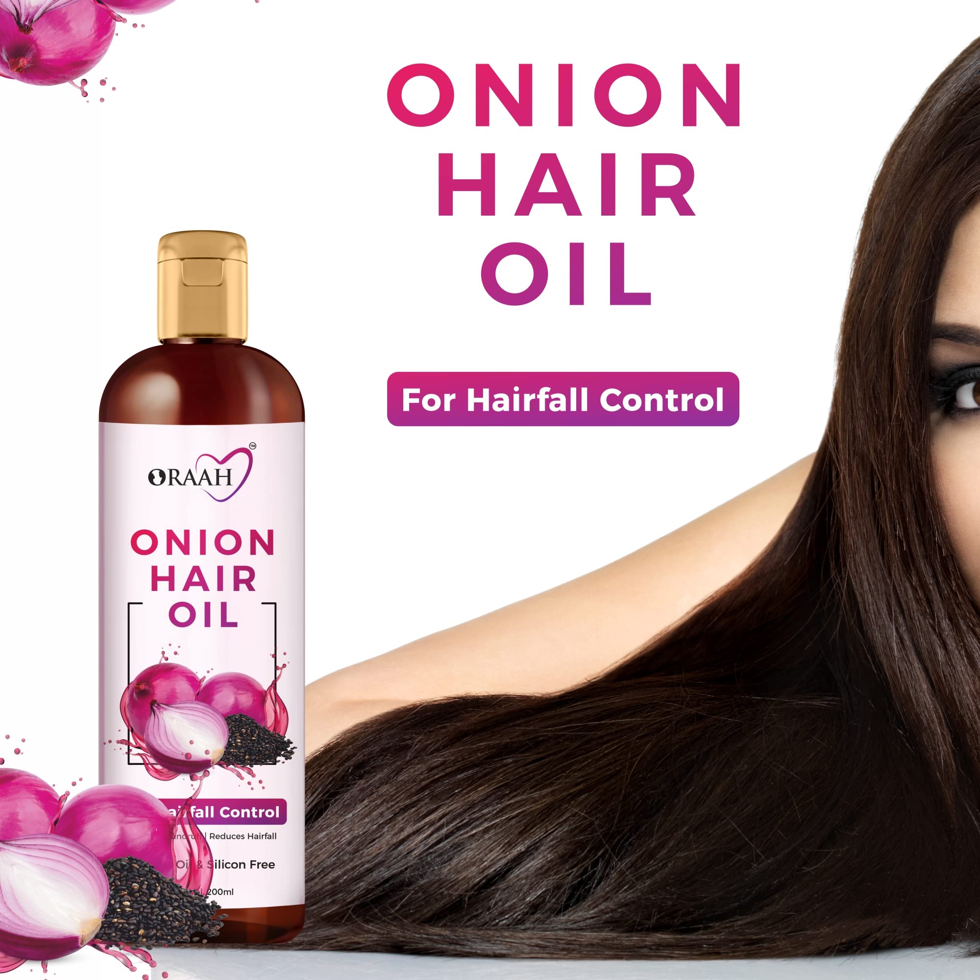 Oraah Onion Hair Oil for Hair Growth and Hair Fall Control - With Black Seed Oil Extracts - 200 ml
