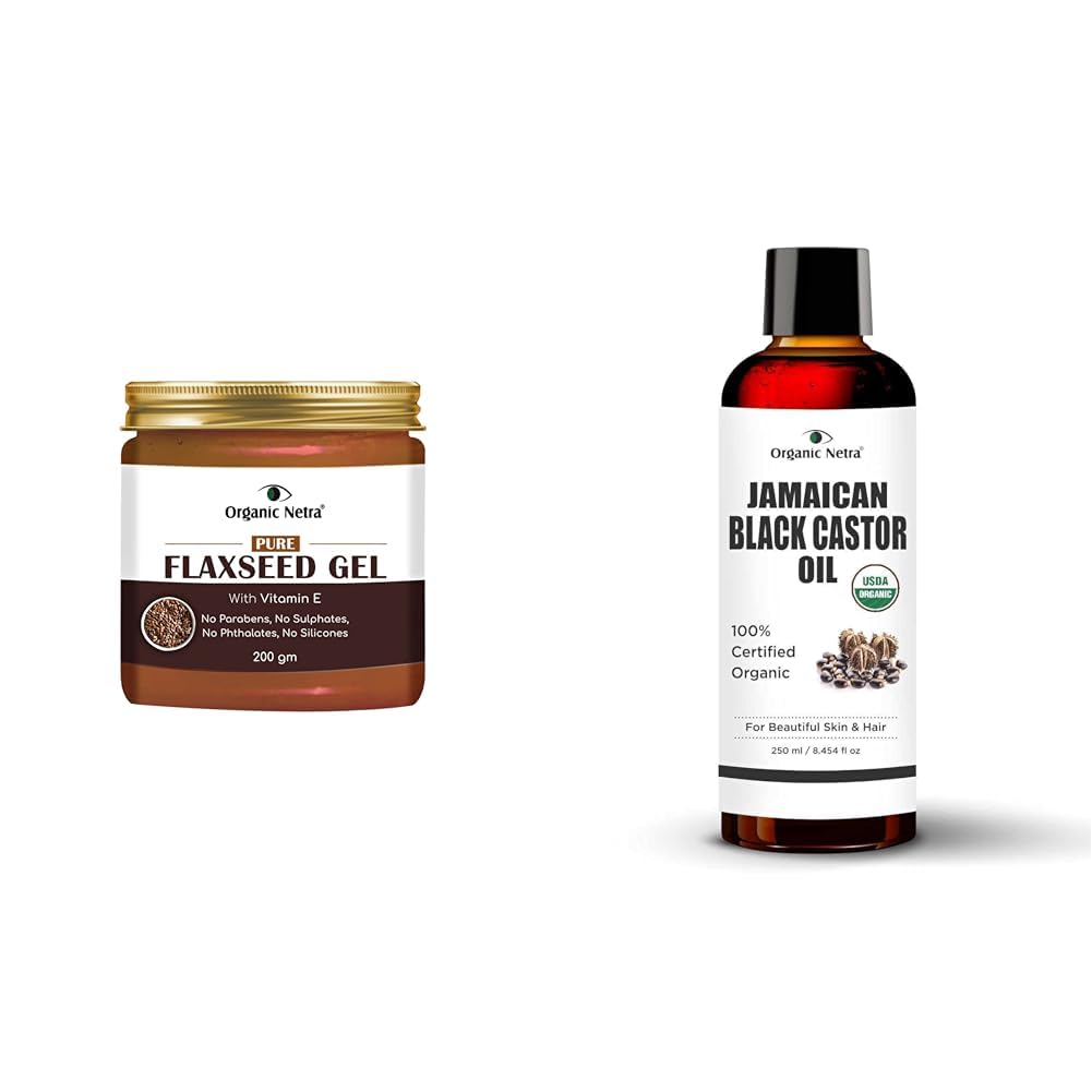 Organic Netra Pure Flaxseed Gel 200g and Organic Netra Cold Pressed Jamaican Black Castor Oil for Hair Growth - 250ml