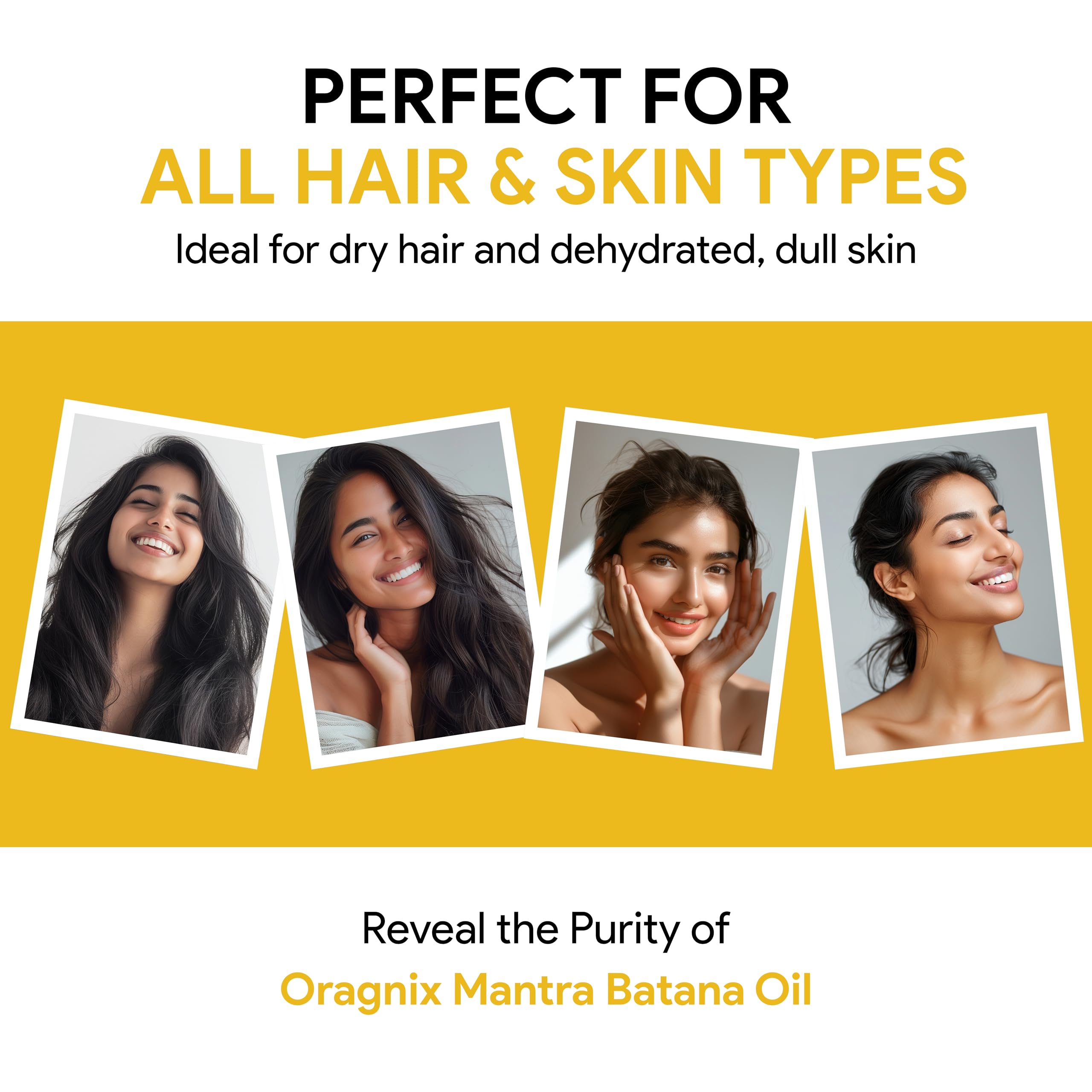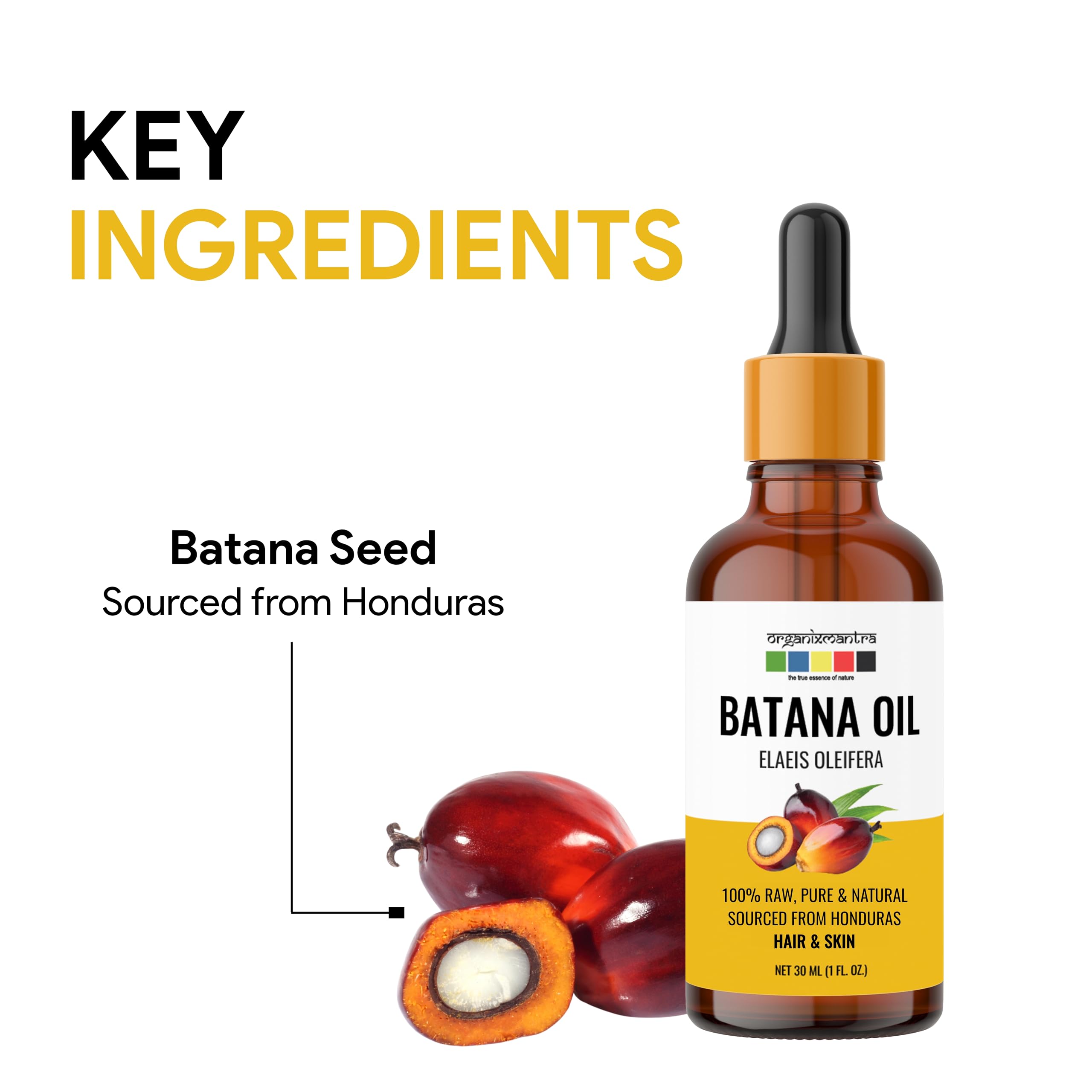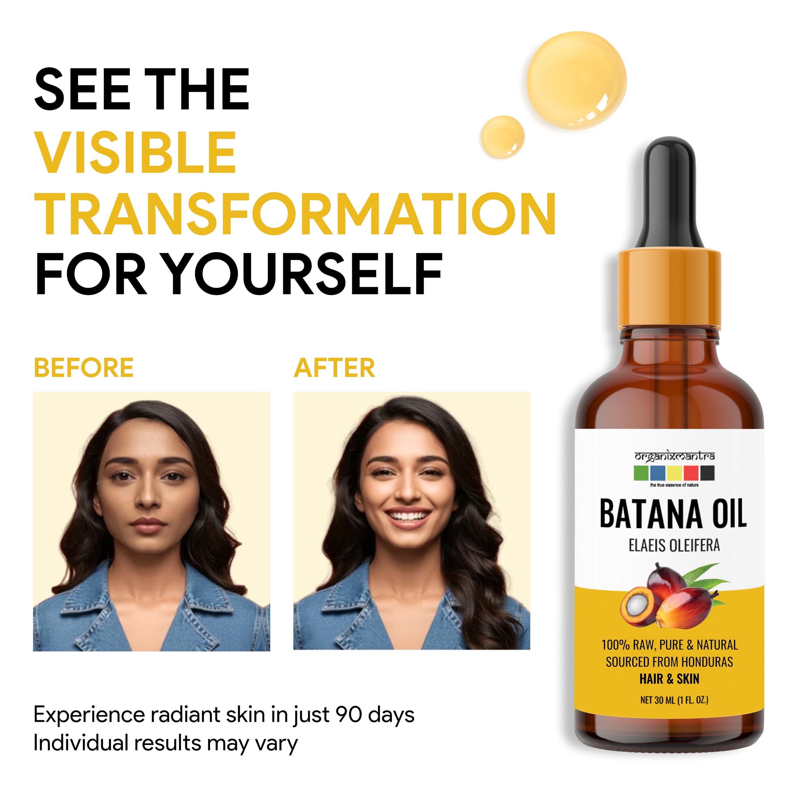 Experience the power of tradition with Organix Mantra Batana Oil a nutrient-rich 100% pure and unrefined oil sustainably sourced from Honduras. Made from the nuts of the American palm tree this cold-pressed oil is a deeply nourishing elixir that has been used for generations to revitalize hair and rejuvenate skin. For hair it promotes healthy growth strengthens weak strands and helps repair damage caused by heat coloring and environmental stressors. Its unique fatty acid profile penetrates deeply into the scalp unclogging follicles and stimulating thicker fuller hair. On the skin Batana Oil acts as a natural moisturizer improving hydration and skin tone. Rich in antioxidants and essential fatty acids it reduces the appearance of scars fine lines and uneven skin tone. Whether you're dealing with dryness dullness or irritation this multitasking oil helps restore natural glow and balance. Free from additives parabens and preservatives Organix Mantra Batana Oil is your clean beauty staple suitable for all hair and skin types including sensitive. Use it as a weekly scalp treatment a leave-in conditioner or as a skin-nourishing oil after your shower. Elevate your self-care ritual with this luxurious oil straight from nature.