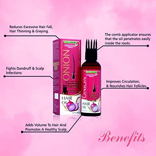 • HERBAL & PLANT DERIVED : Our Onion Hair Oil is formulated naturally and helps reduce hair loss & restores nutrients lost due to exposure to pollution & harmful chemicals. The built-in comb applicator helps detangle hair and spread the oil evenly onto each