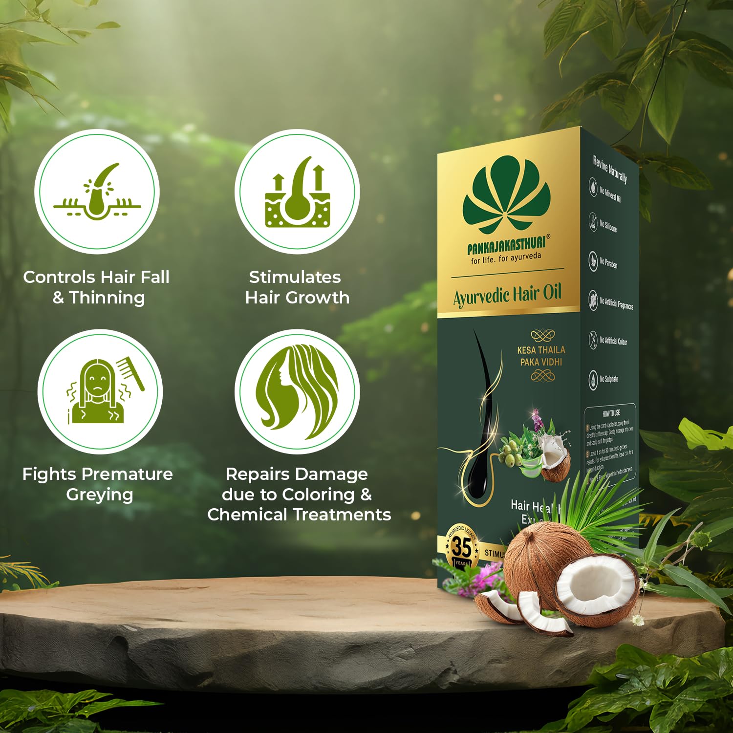 • AYURVEDIC FORMULA: Crafted using ancient 'Kesa Thaila Paka Vidhi' process from Kerala Ayurvedic tradition combining 13 powerful herbal ingredients for complete hair care.