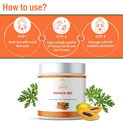 Papaya Gel for Face Skin and hair. This remarkable product is a testament to the transformative power of natural and organic ingredients. Crafted with care it becomes your holistic choice for both skincare and haircare. With its unique blend of Aloe Vera and Papaya extracts it provides an indulgent long-lasting moisturization experience that leaves your skin irresistibly soft and supple. What sets this gel apart is its ability to brighten your complexion thanks to the skin-loving Papaya extract that diminishes pigmentation dark circles and tanning gradually revealing a more radiant and even skin tone. The infusion of Vitamin C from Papaya and the soothing properties of Aloe Vera also bestow anti-ageing benefits reducing the appearance of wrinkles and ensuring your skin maintains a youthful rejuvenated glow. Dermatologist-tested and suitable for all skin and hair types this gel is a pure and natural choice free from sulfates parabens artificial preservatives and colours. Embrace the beauty of nature and elevate your self-care routine with this 100% pure and natural gel.
