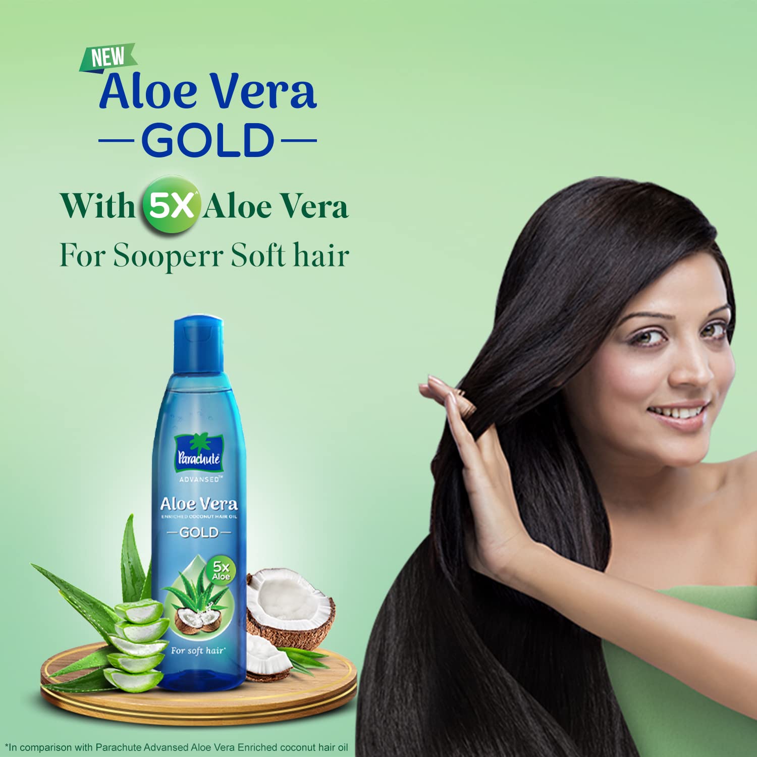 Parachute Advansed Aloe Vera GOLD Enriched Coconut Hair Oil 5X Aloe Vera with Coconut Oil Makes hair Sooperr soft 250ml+ 400ml