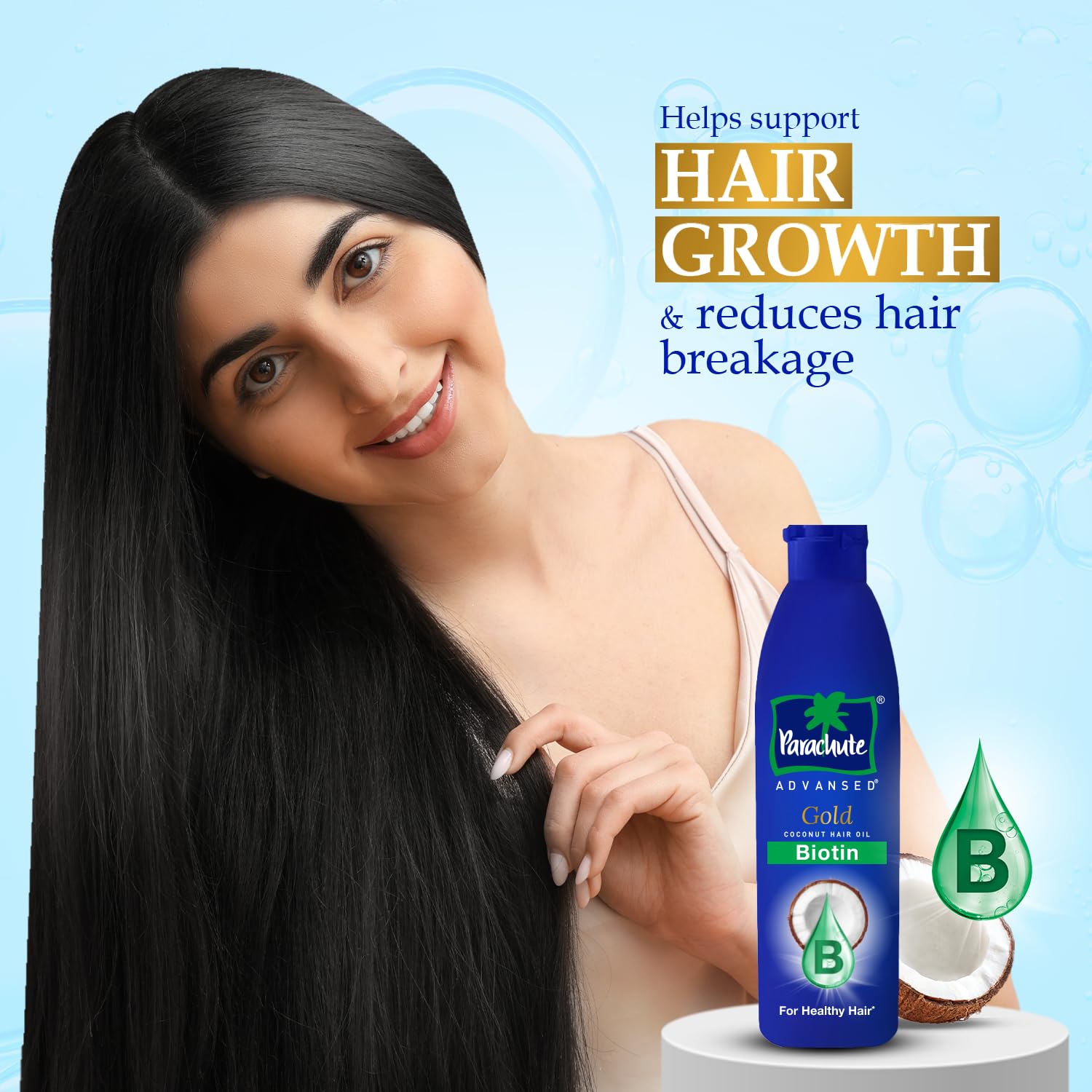 Parachute Advansed Biotin & Coconut Hair Oil combines the nourishing goodness of coconut oil with the strengthening benefits of biotin providing essential care for hair that needs volume and strength. This unique formula penetrates up to 10 layers deep delivering essential nutrients to your hair and supporting healthy growth. Biotin helps reduce breakage making your hair fuller and stronger while the coconut oil moisturises and conditions deeply. Ideal for thin weak brittle hair Parachute Advansed Biotin & Coconut Hair Oil helps promote healthier fuller-looking locks. This oil is also free from parabens and silicones hence you get safe gentle care for your hair. To use gently massage this oil into your scalp and hair leave it on for 30 minutes and then rinse it out with your favourite shampoo. For best results use 2-3 times per week to enjoy healthier more manageable hair.